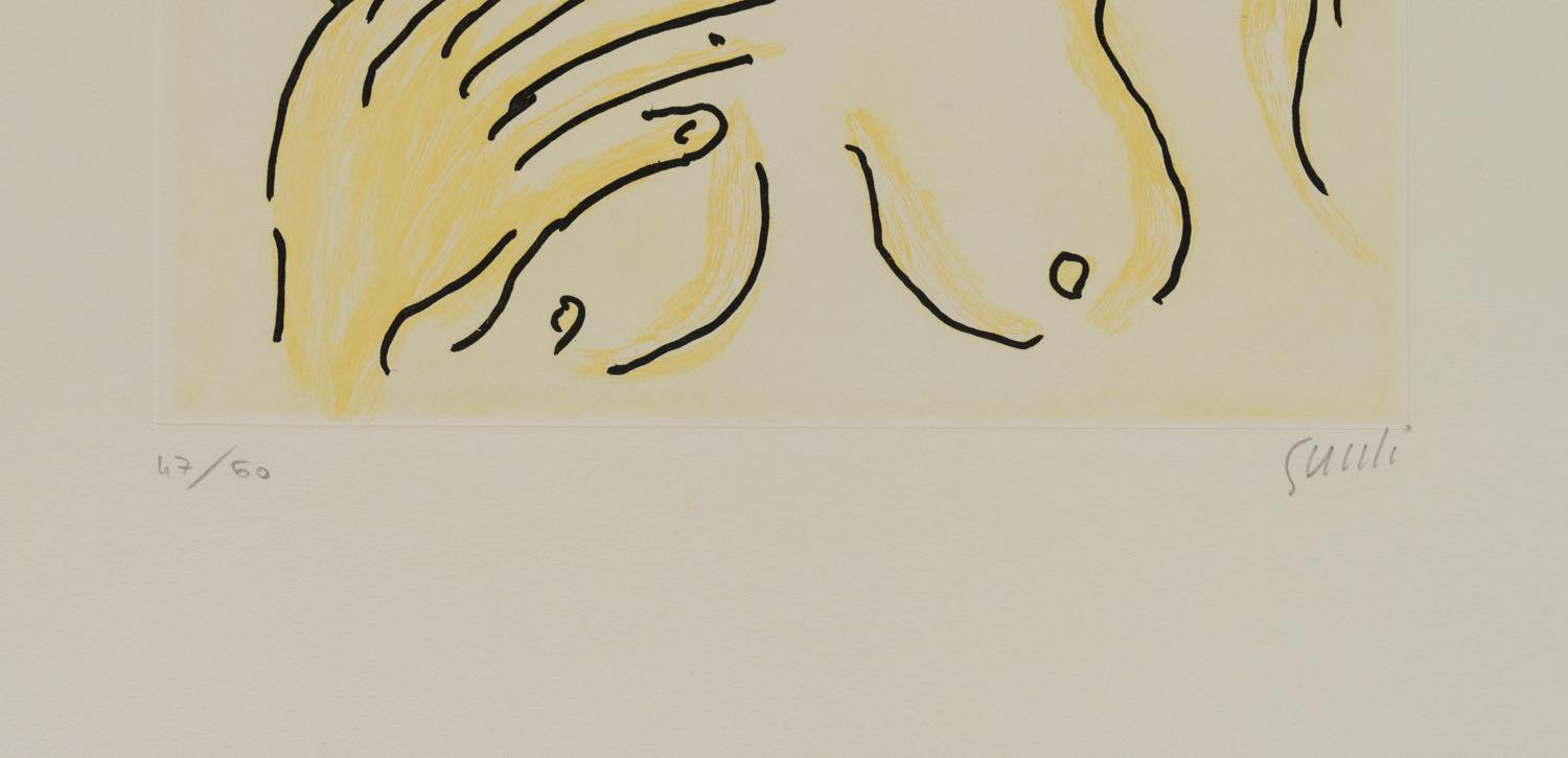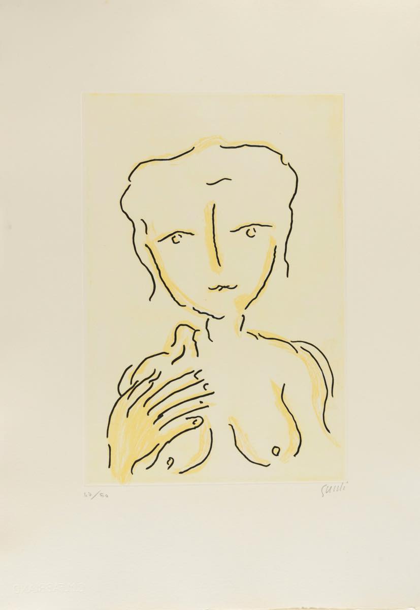 Virgilio Guidi (Roma 1891 - Venezia 1984), “Busto femminile”. Litografia a colori su carta, firmata in basso a destra, numero di tiratura in basso a sinistra 47/60, Lastra H cm 44.5x30