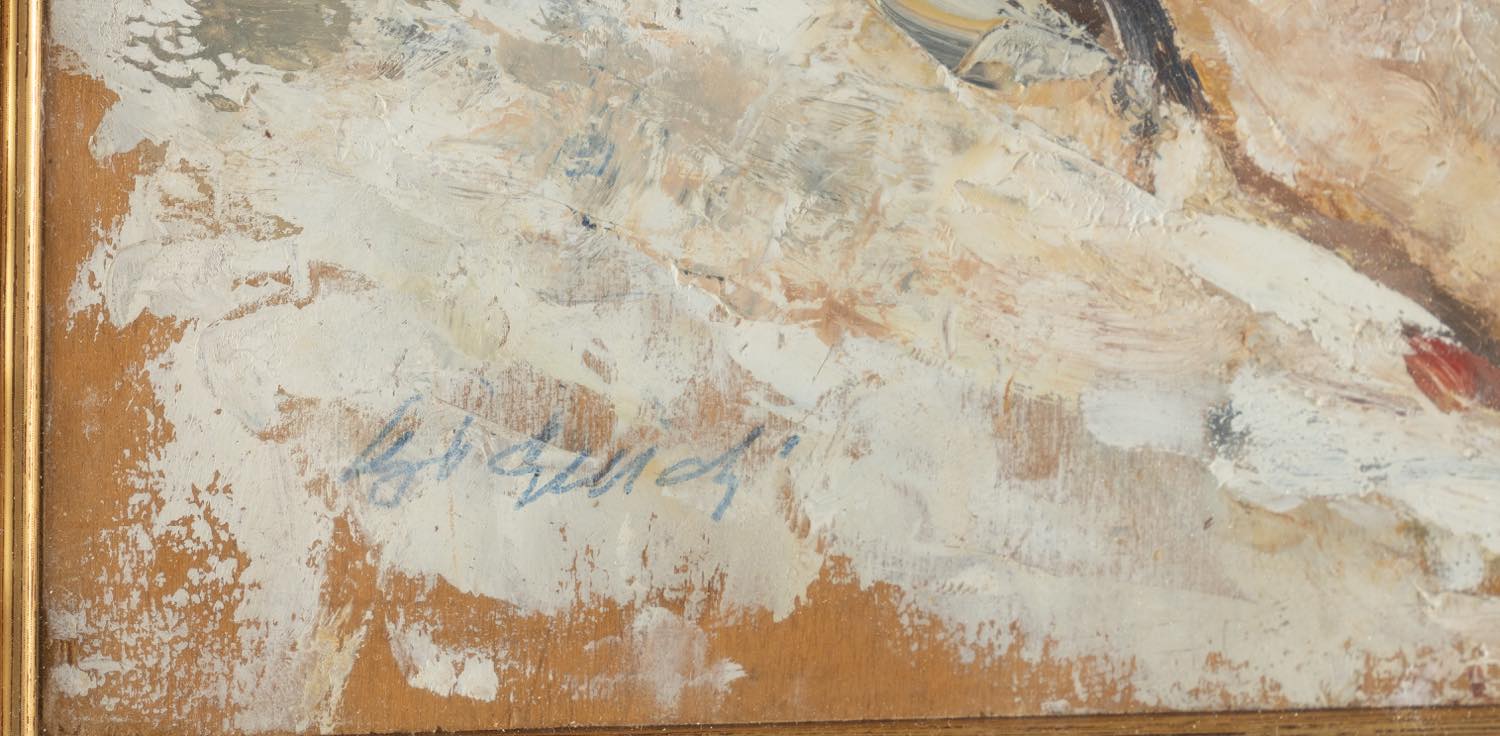 Ugo Guidi (Comacchio 1923 - Bologna 2007), “Nudo femminile seduto”. Olio su tavoletta, firmato in basso a sinistra, H cm 31.5x22.5