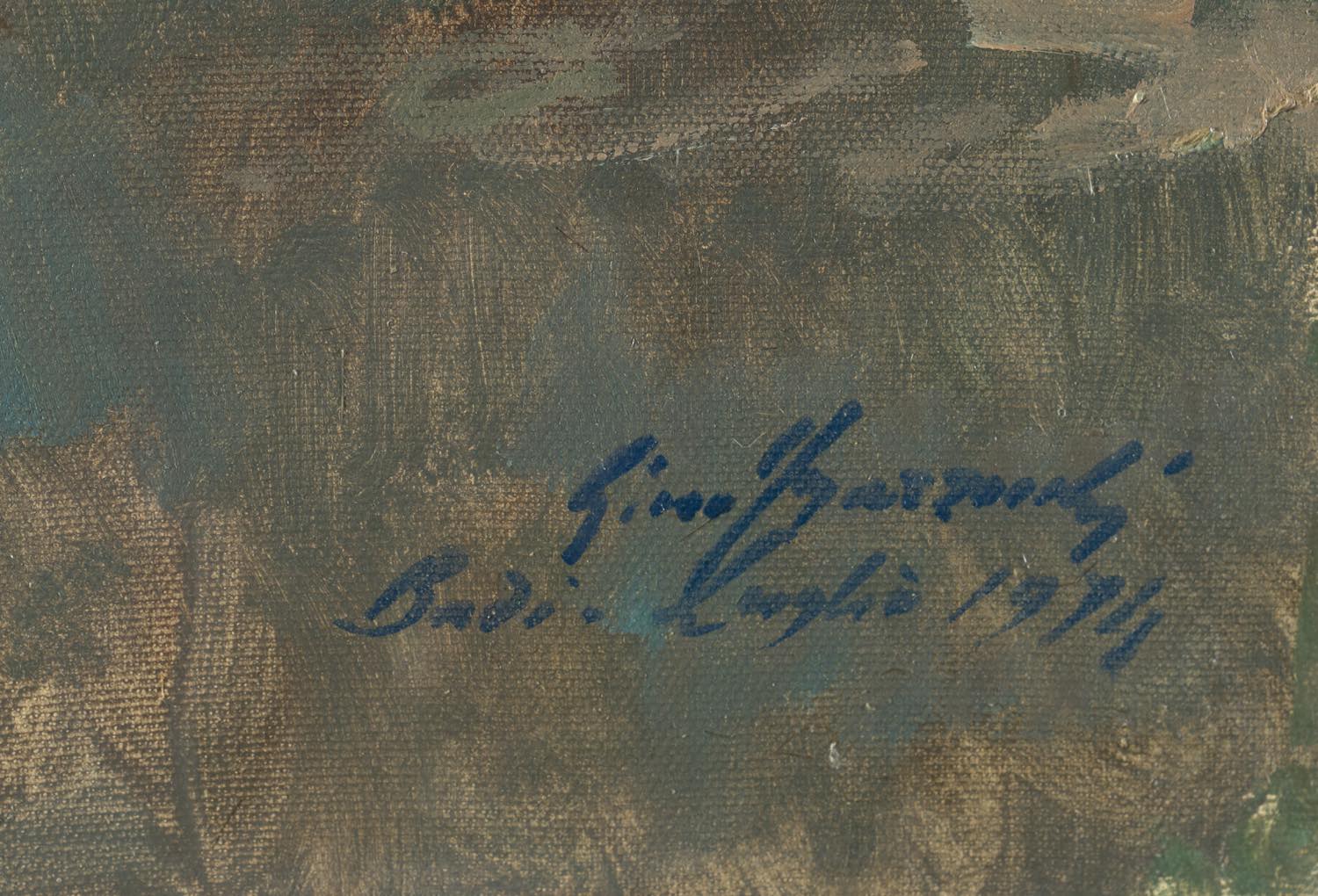 Gino Marzocchi (Molinella 1895 - Bologna 1991), “Scorcio di paese con cane”, 1974. Olio su tela, firmato e datato in basso a destra, H cm 60x40