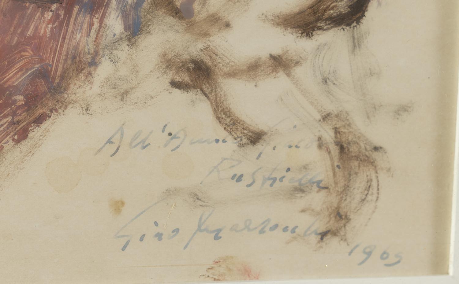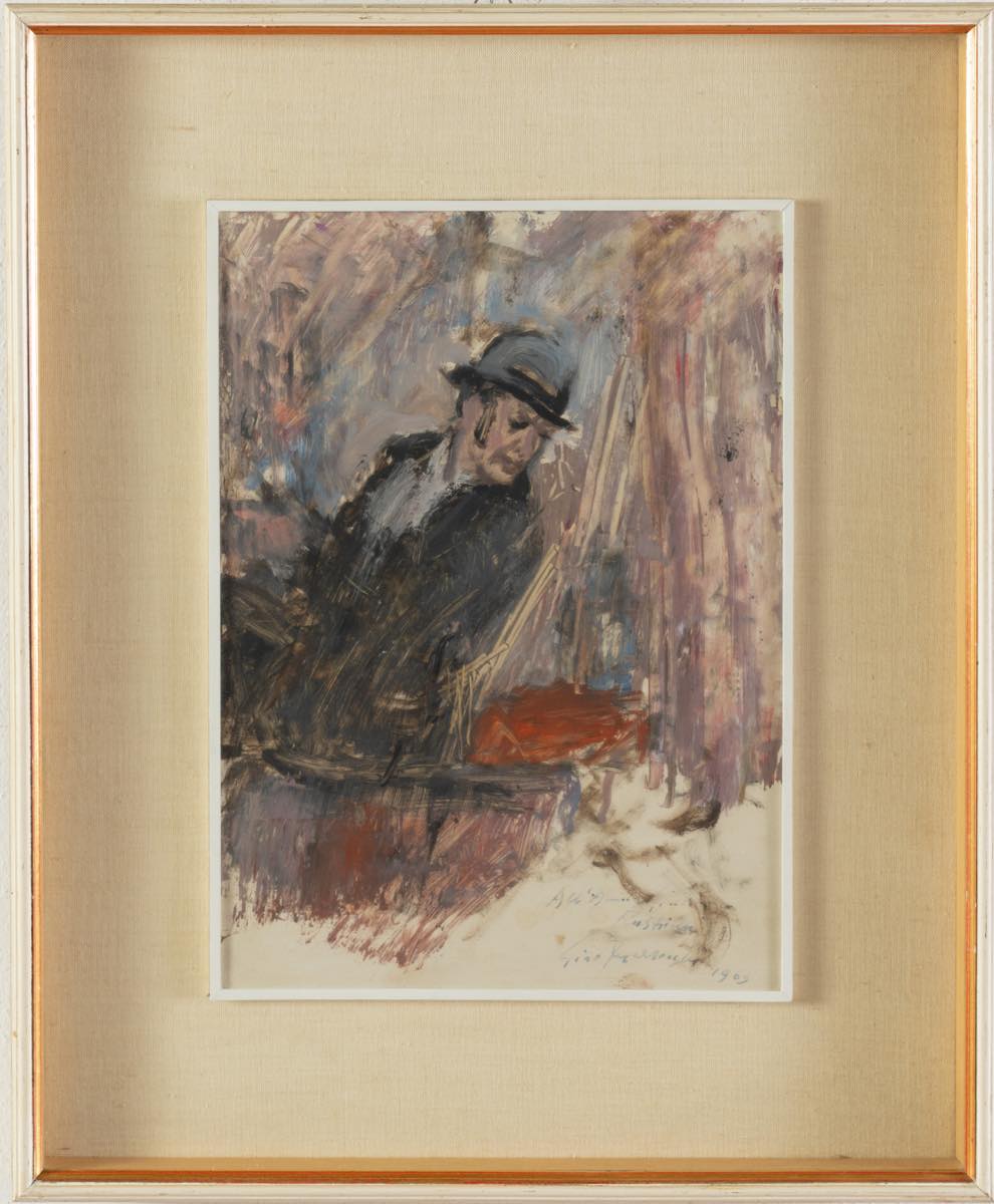 Gino Marzocchi (Molinella 1895 - Bologna 1991), “Ritratto maschile”, 1965. Tempera su carta applicata a tavola, reca in basso a destra dedica, firma e data, H cm 36x25.5