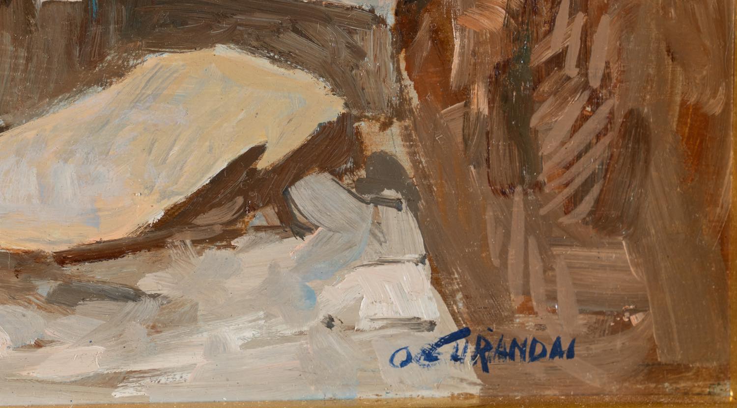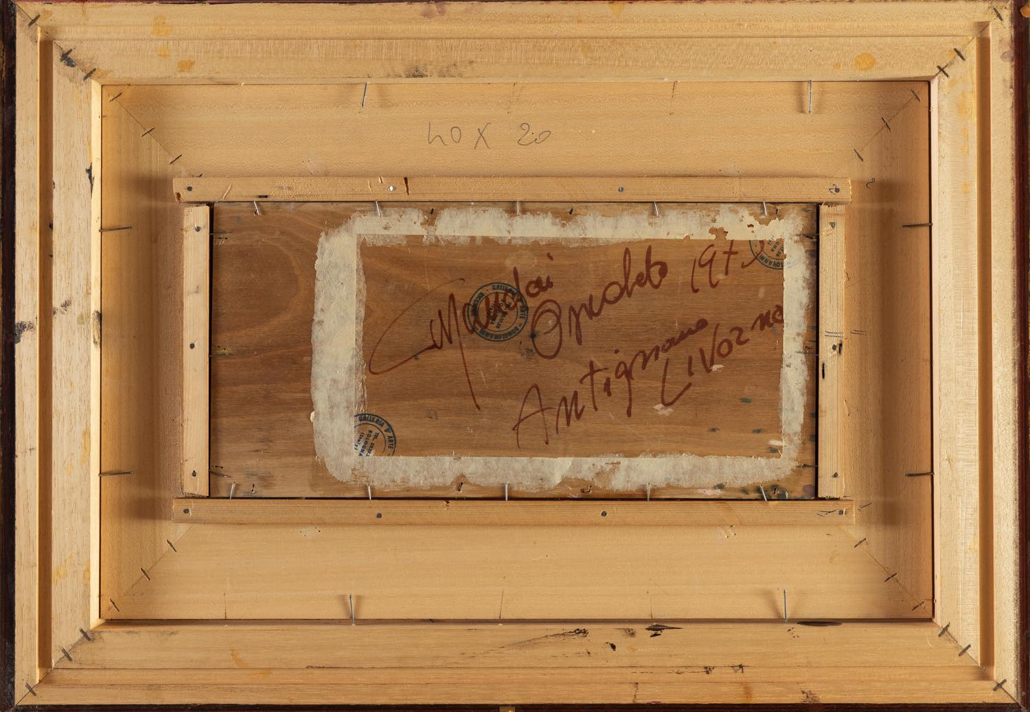 Osvaldo Curandai (Firenze 1931 - Rignano 2019), “Antignano – Livorno”, 1975. Olio su tavola, firmato in basso a destra, reca al retro firma, data, titolo e timbri della Galleria Bongiovanni – Riccione, H cm 20x40