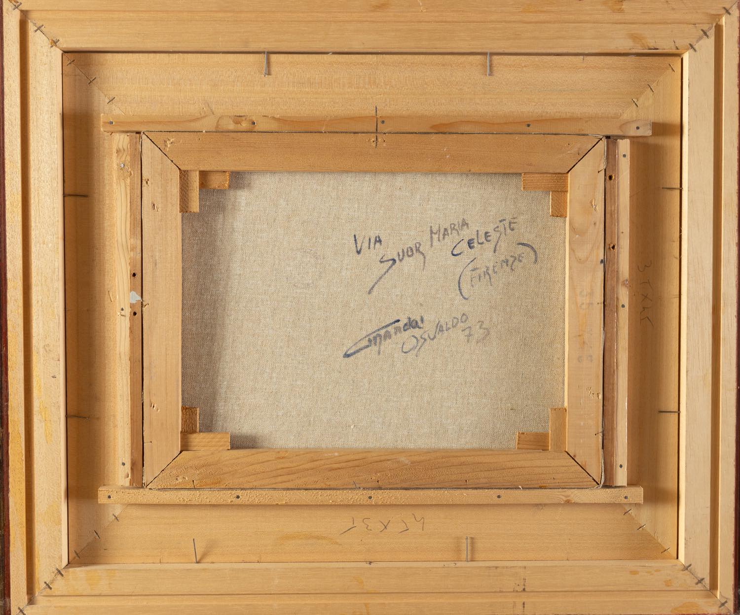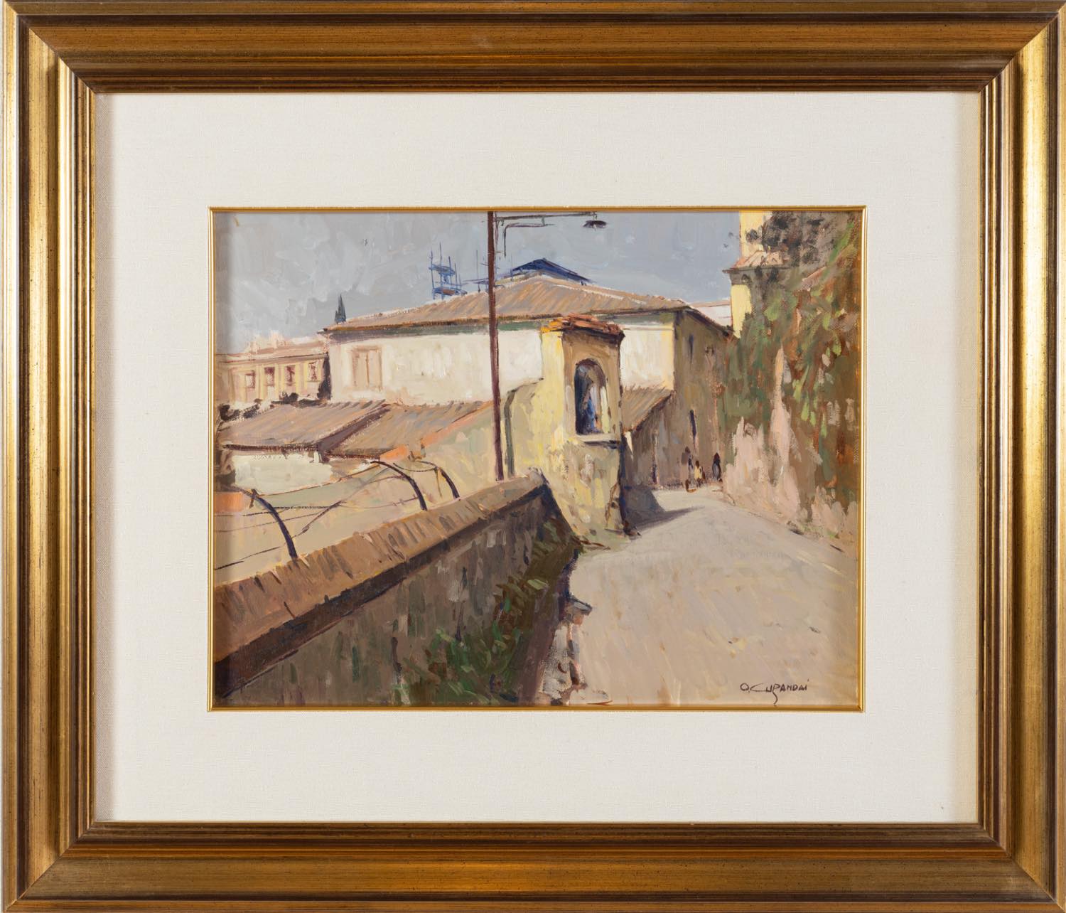 Osvaldo Curandai (Firenze 1931 - Rignano 2019), “Via Suor Maria Celeste (Firenze)”, 1973. Olio su tela, firmato in basso a destra, reca al retro titolo, firma e data, H cm 35x45