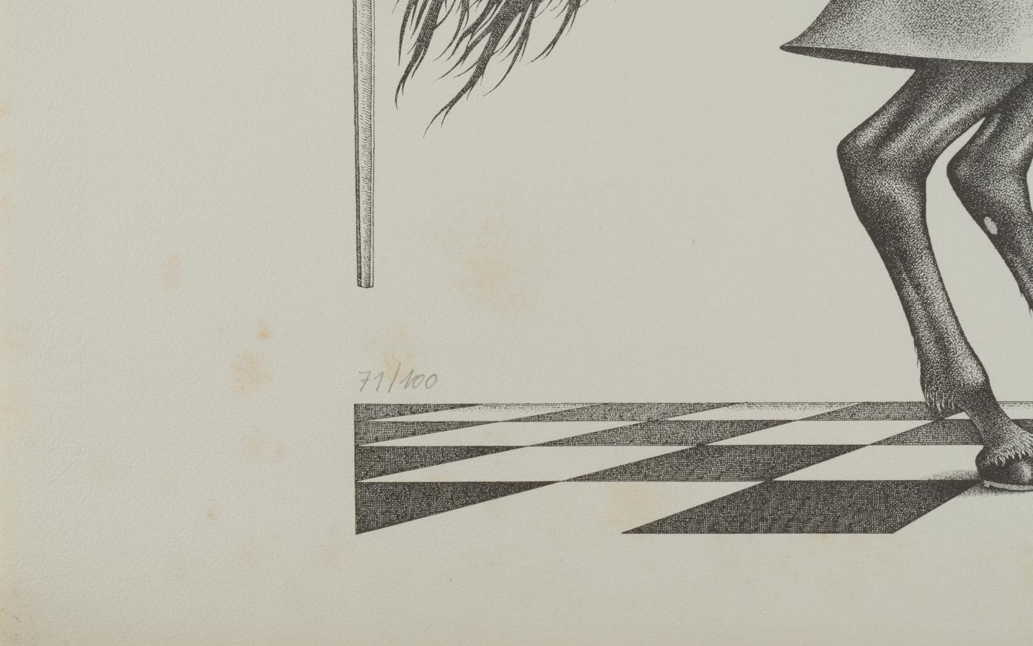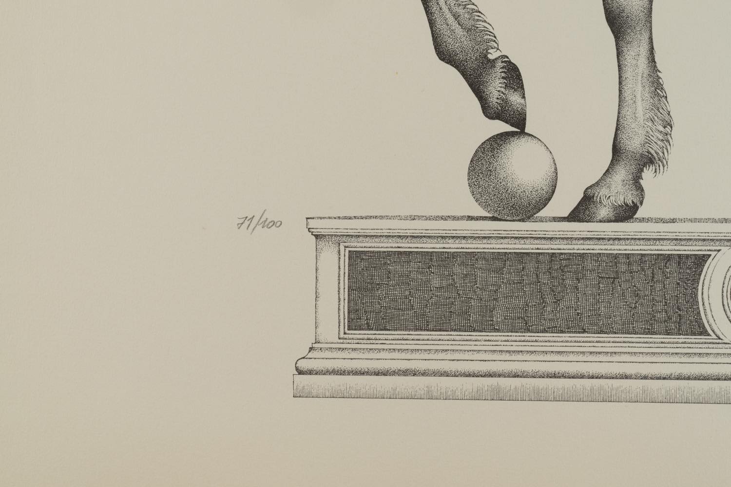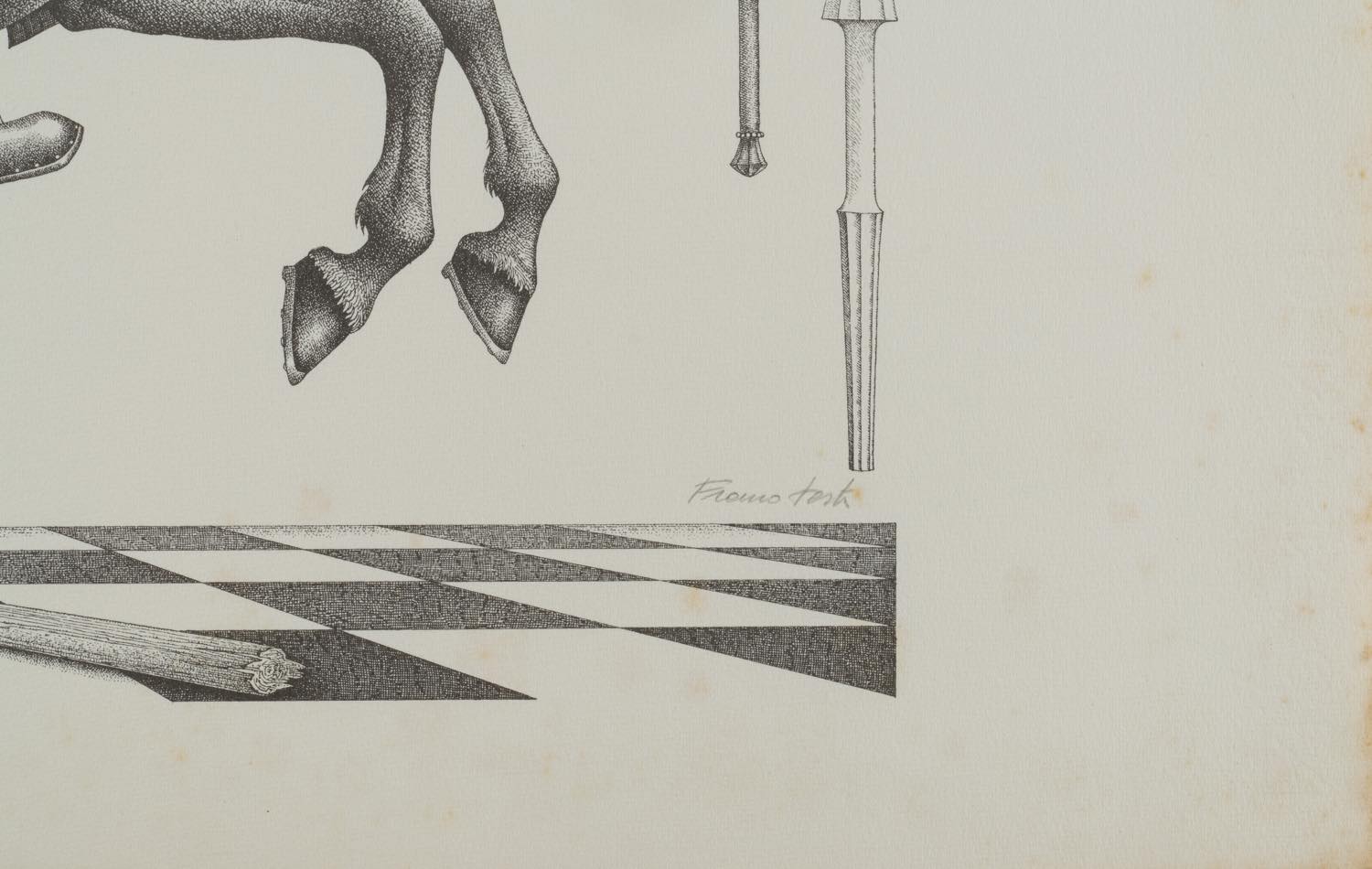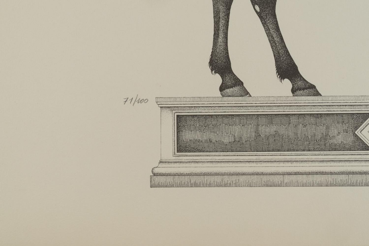 Franco Testa (XX-XIX secolo), “Cavalli e Cavaliere”. Tre litografie su carta firmate in basso a destra Franco/F. Testa, recano numero di tiratura in basso a sinistra 71/100, H cm 50x70 (lievi difetti)
