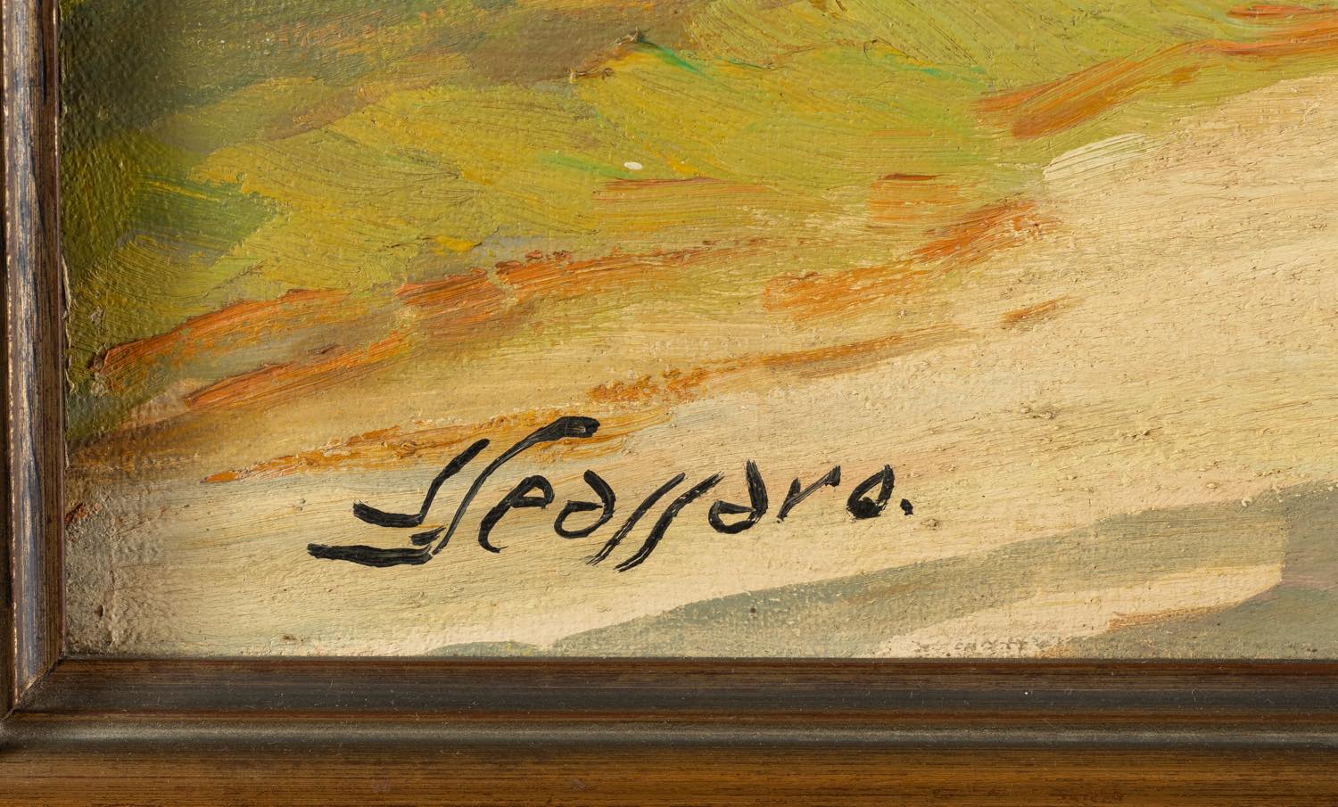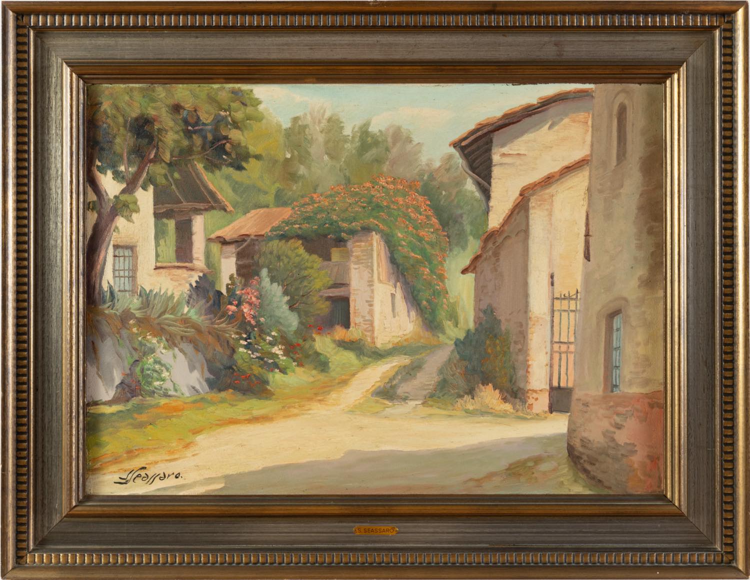 Saverio Seassaro (Genova 1917 – 2016), “Paesaggio con case” Olio su tela, firmato in basso a sinistra, H cm 49x70