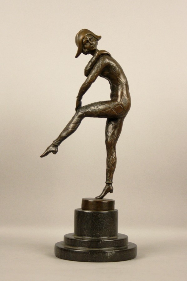 CHIPARUS DIMITRI - Nato a Dorohoi (Romania) nel 1886. Morto a Parigi nel 1947. Scultura in bronzo raff. ''ARLECCHINA''. Montata su base in marmo nero. Firmata sulla base. Mis. Alt. cm. 35 ca.