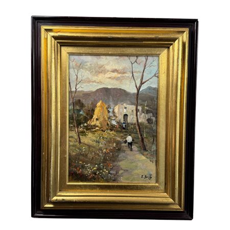 Dipinto olio su tela, periodo XX secolo scuola Italiana, raffigurante Paesaggio di campagna.