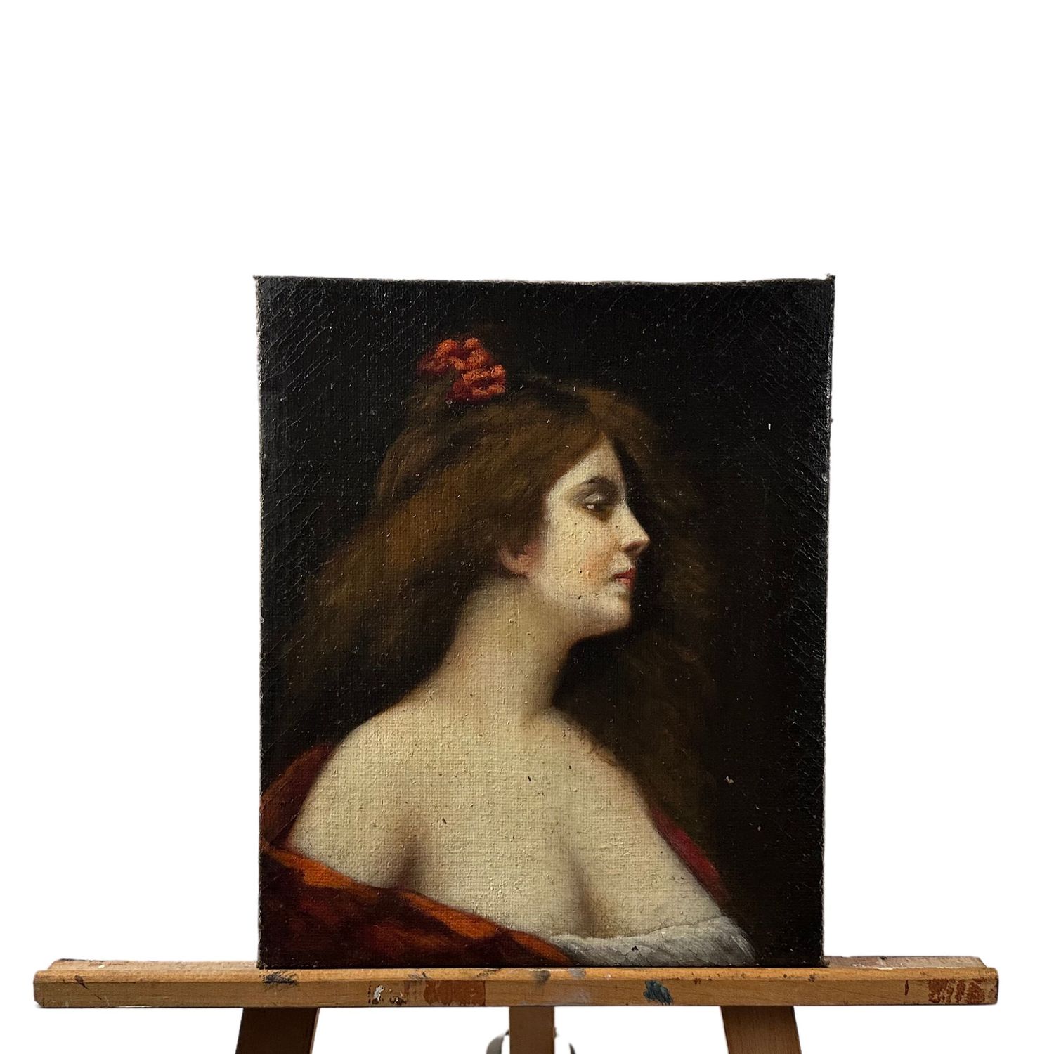 Dipinto olio su tela periodo XX secolo scuola Italiana, raffigurante Ritratto di donna nella maniera di Angelo Asti.