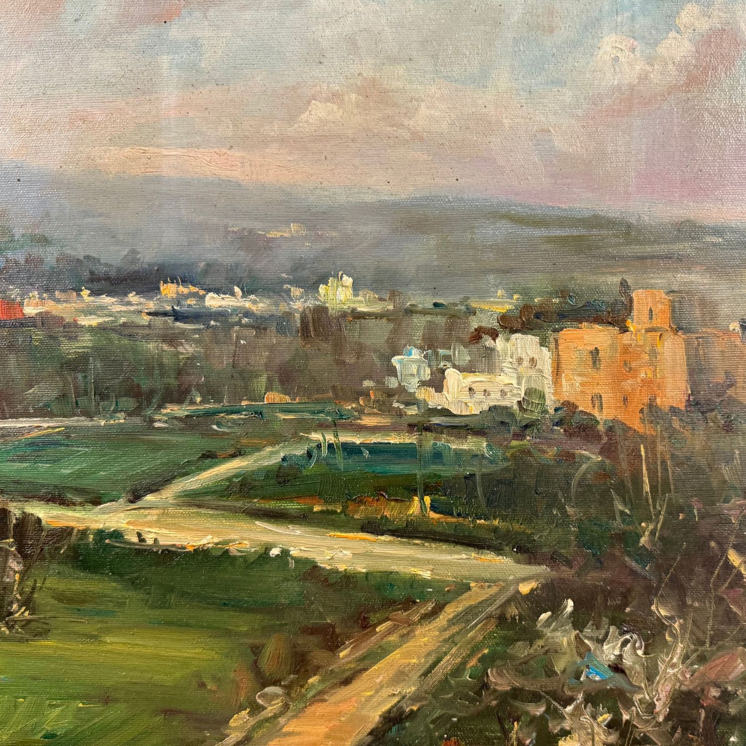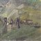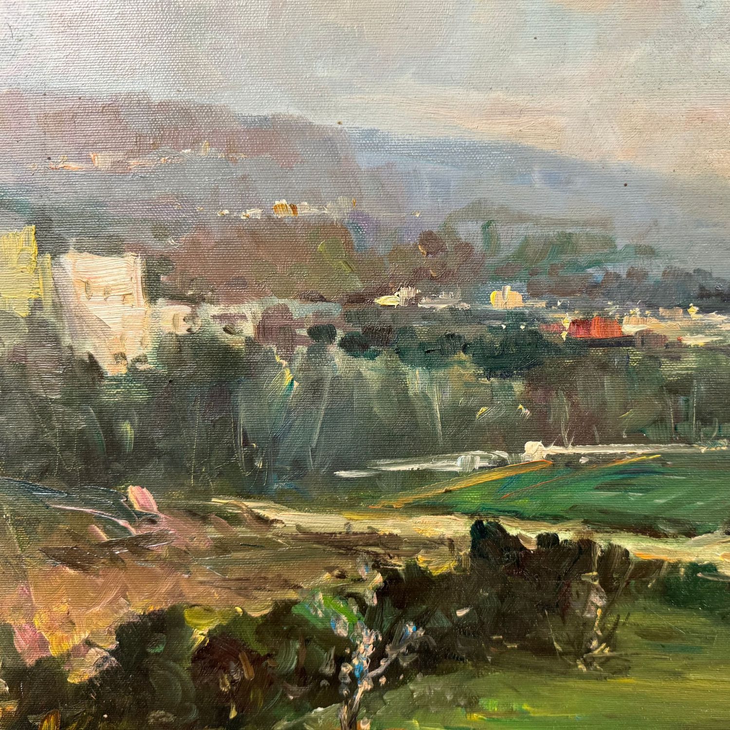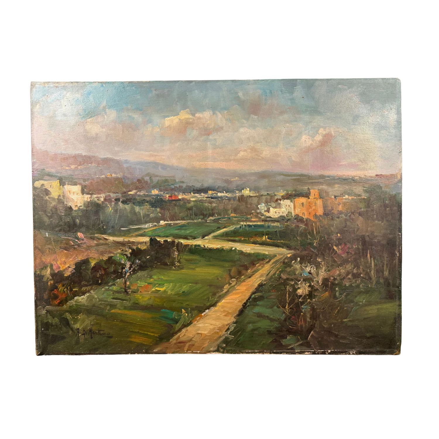 Dipinto olio su tela, periodo XX secolo scuola Italiana, raffigurante Tramonto a Pianura.