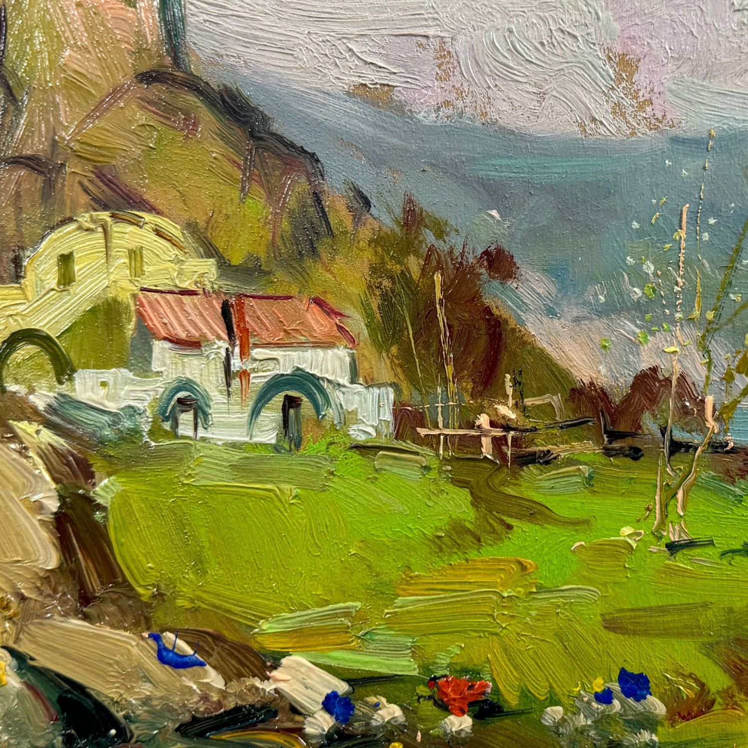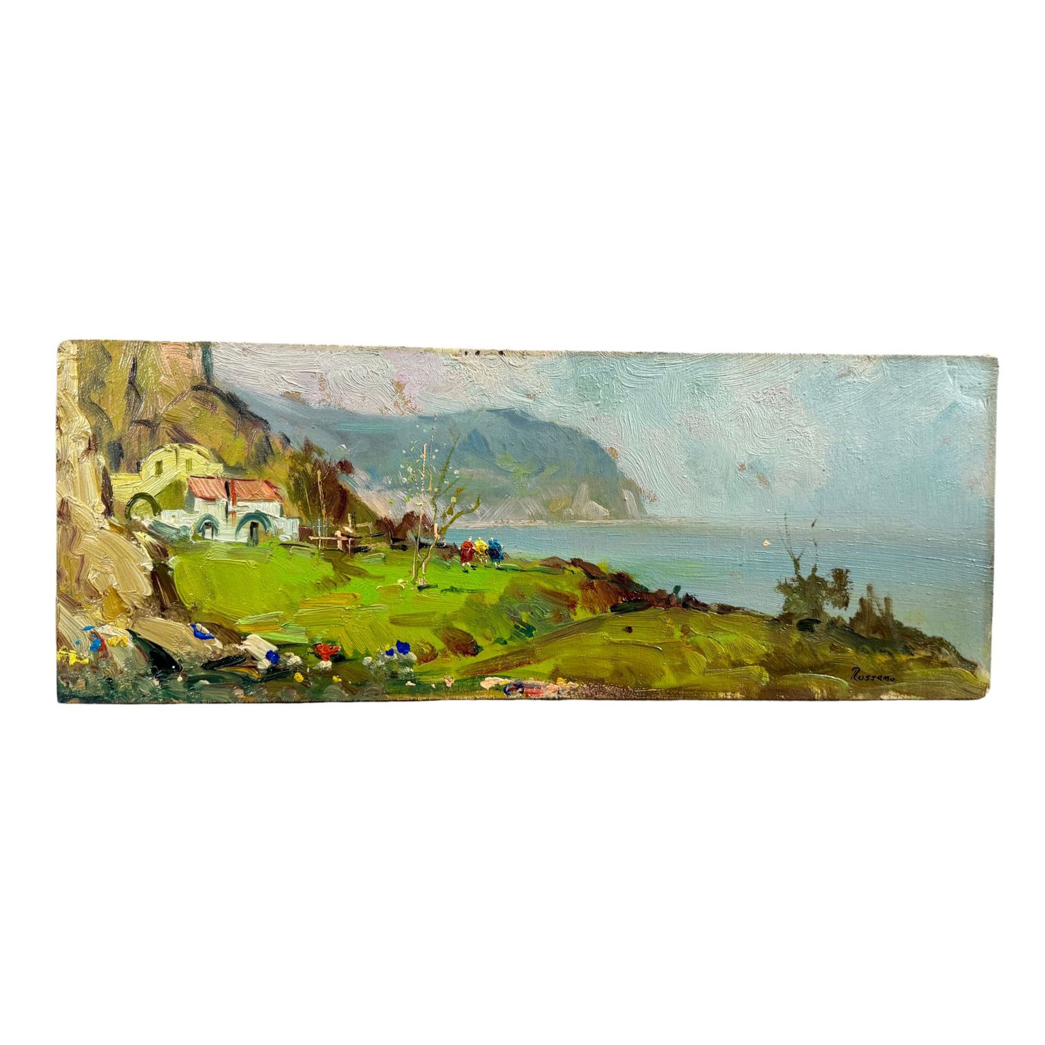 Dipinto olio su tavoletta, periodo XX secolo scuola Italiana, raffigurante Ischia isola Verde.