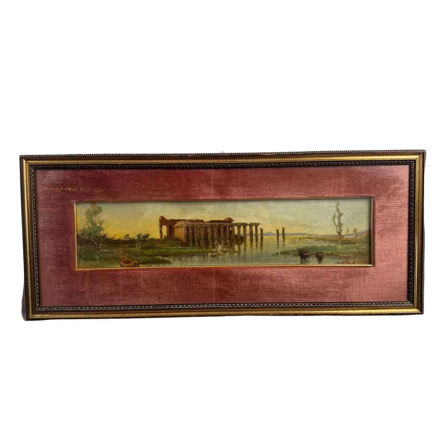 Dipinto olio su tavola, periodo XX secolo scuola Italiana, raffigurante Capriccio architettonico.