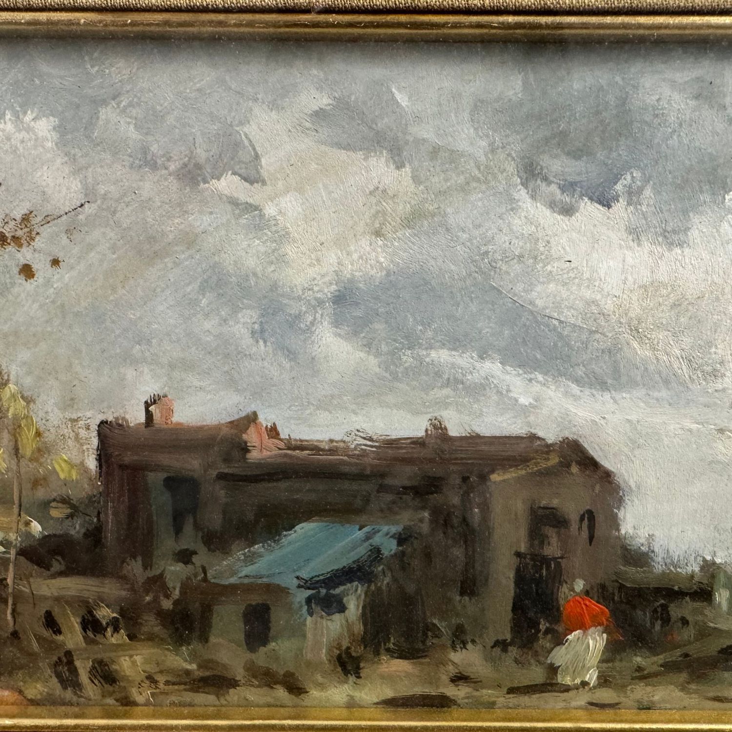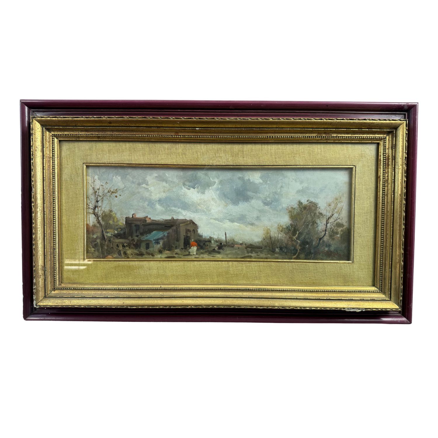 Dipinto olio su pannello, periodo XX secolo scuola Italiana, raffigurante Paesaggio di campagna.