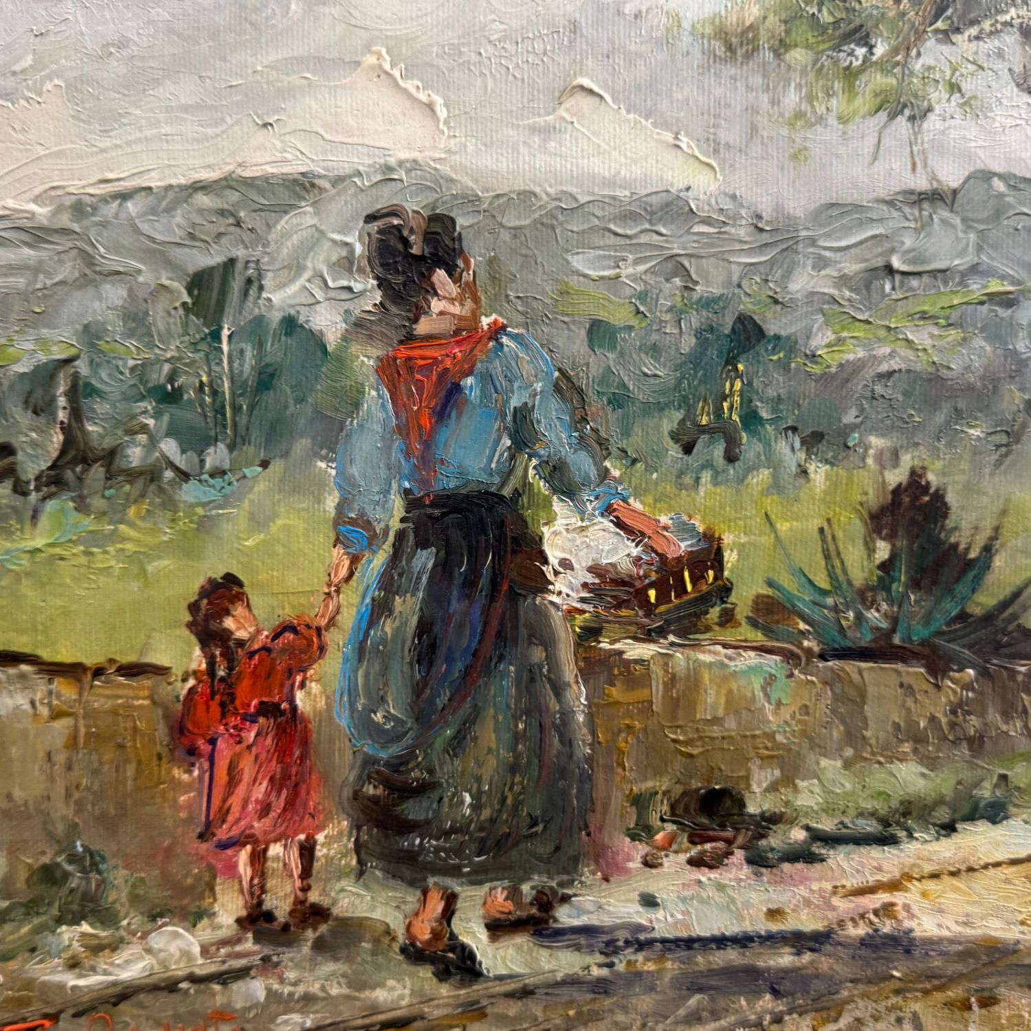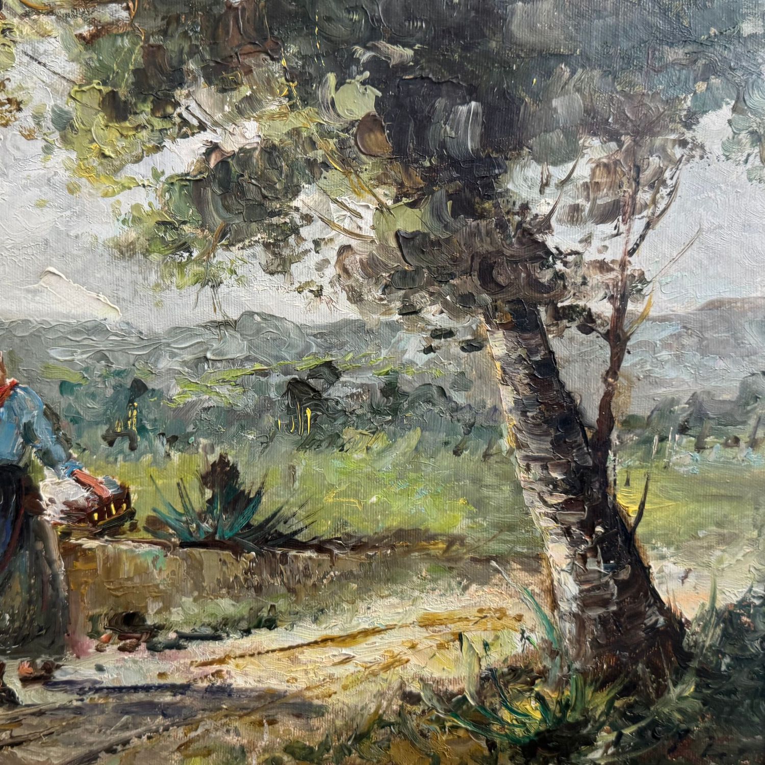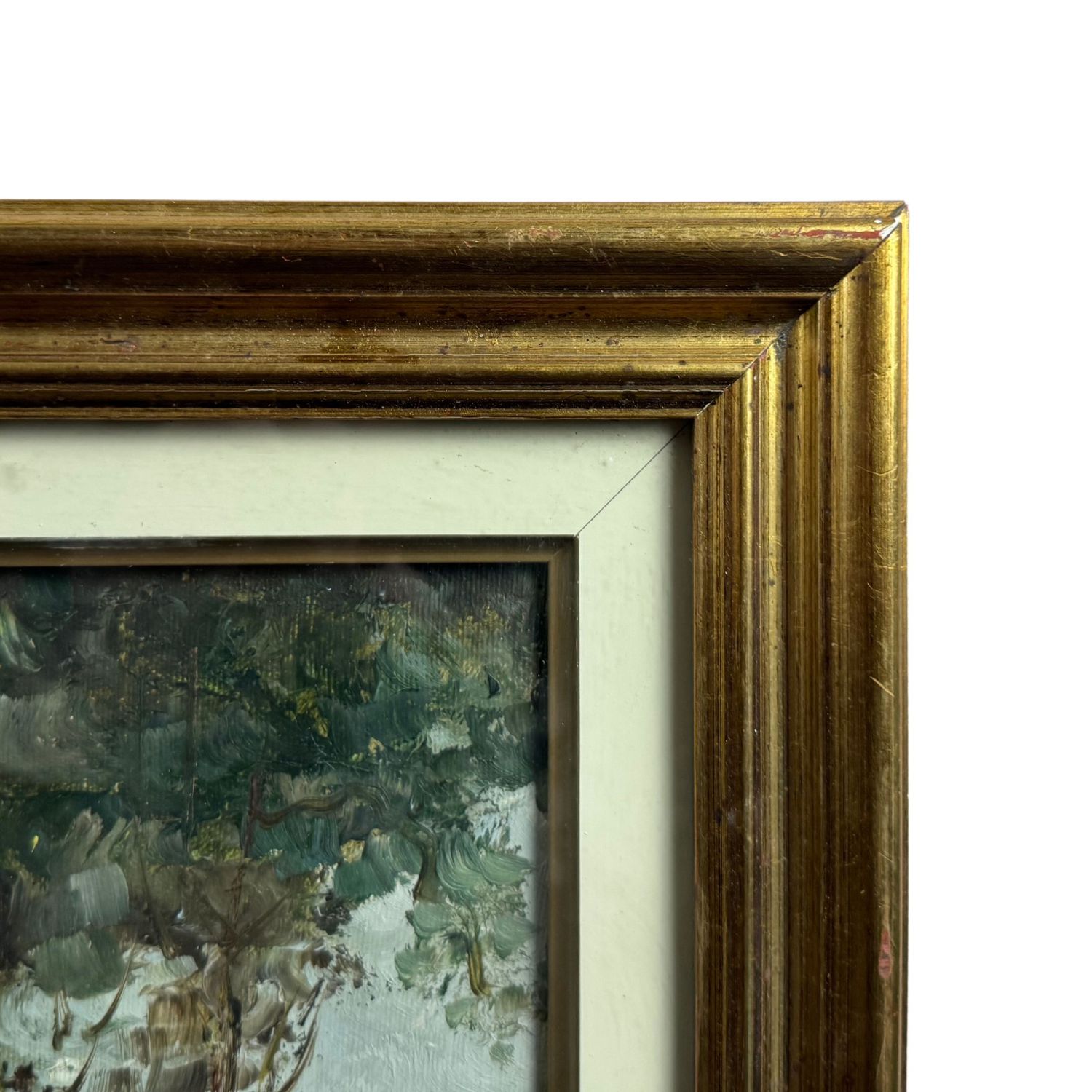Dipinto olio su tela applicata su cartoncino, periodo XX secolo scuola Italiana, raffigurante Paesaggio di campagna.