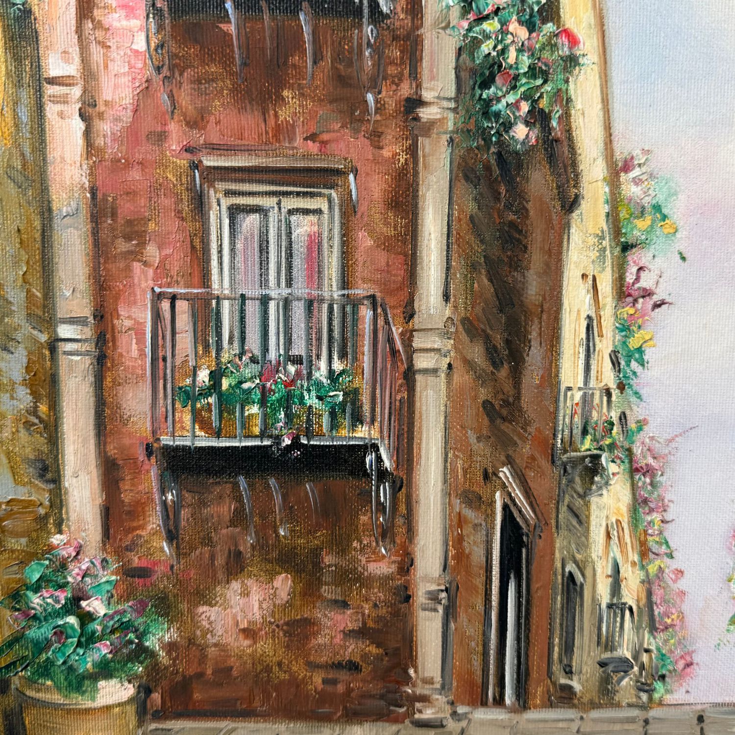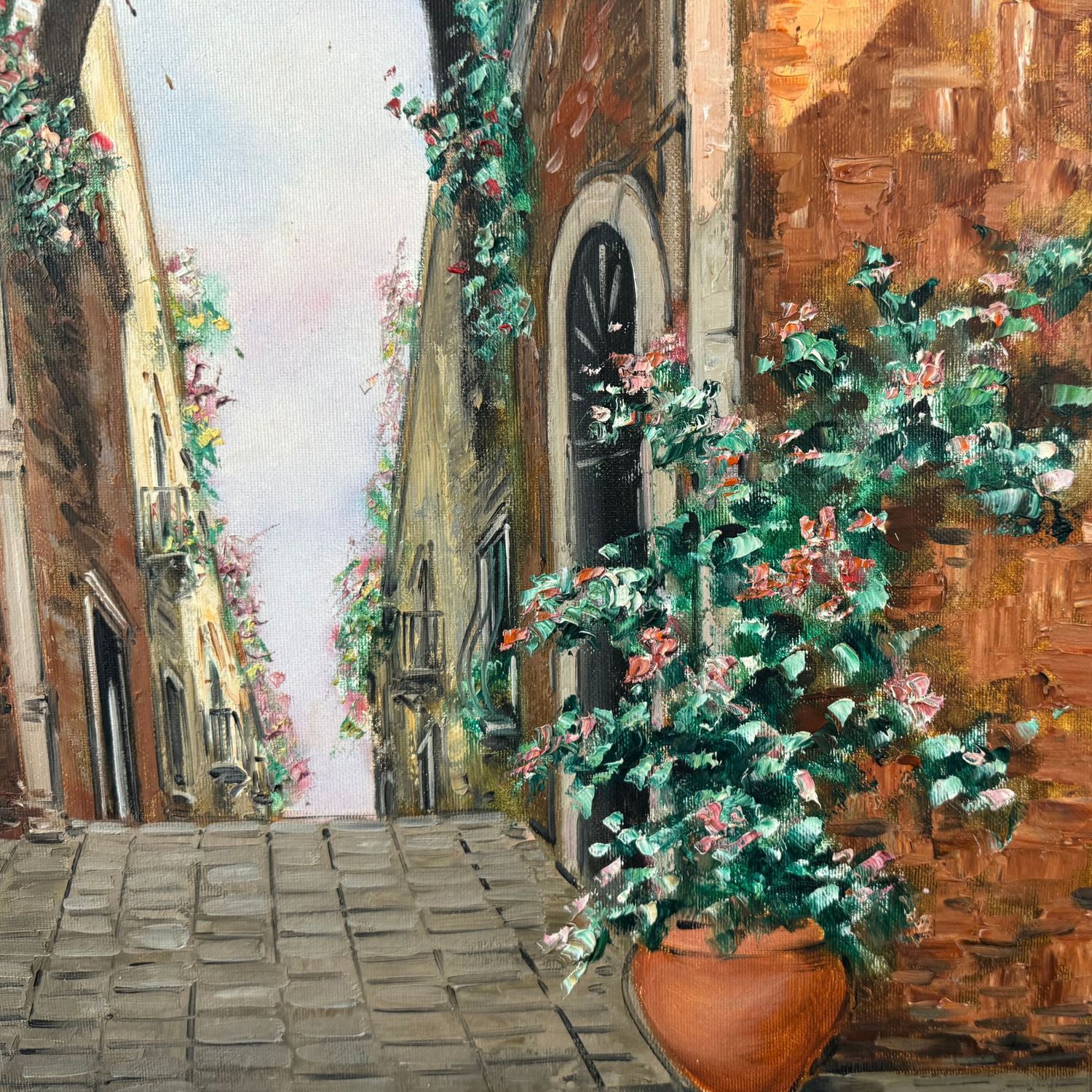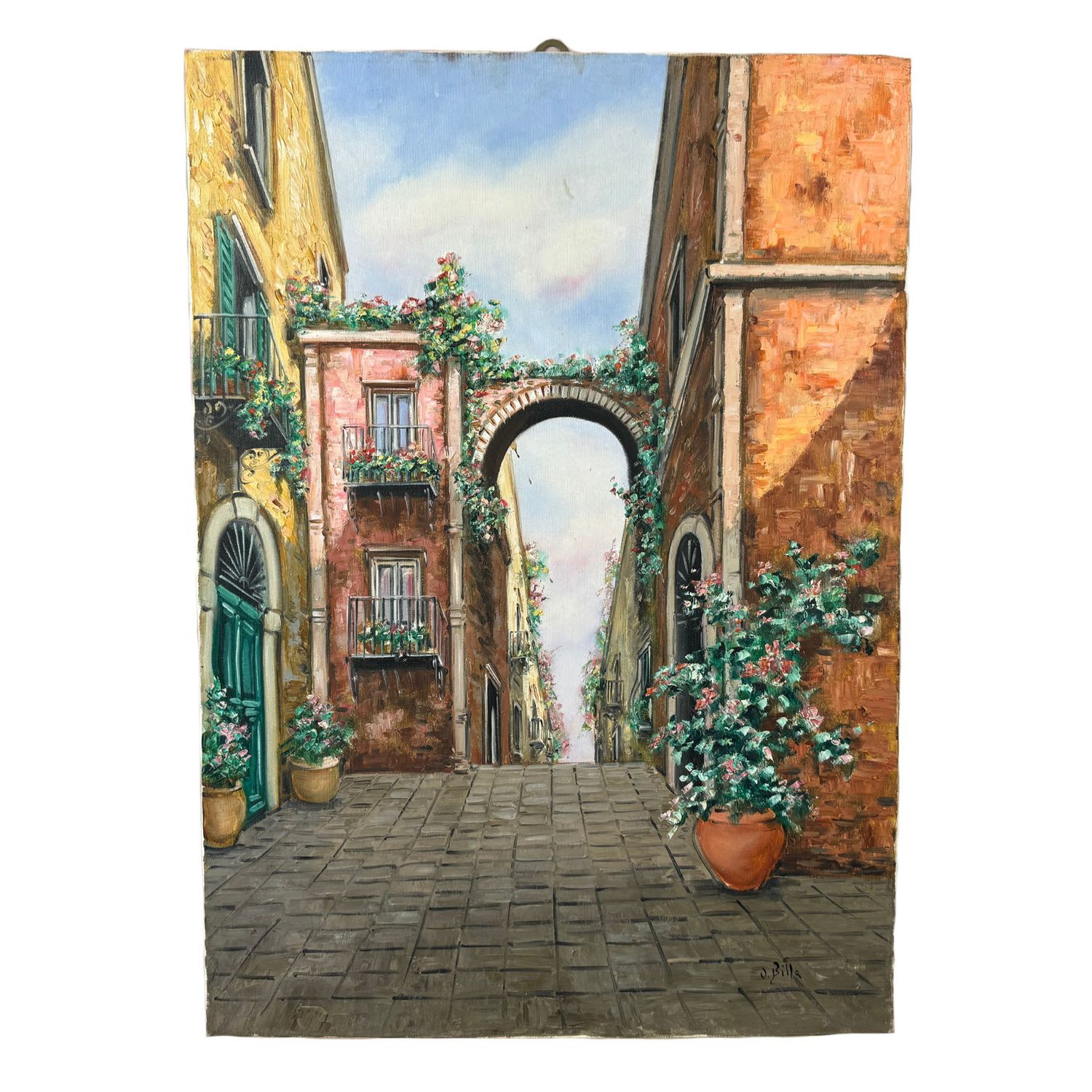 Dipinto olio su tela, periodo XX secolo scuola Italiana, raffigurante Strada napoletana.