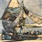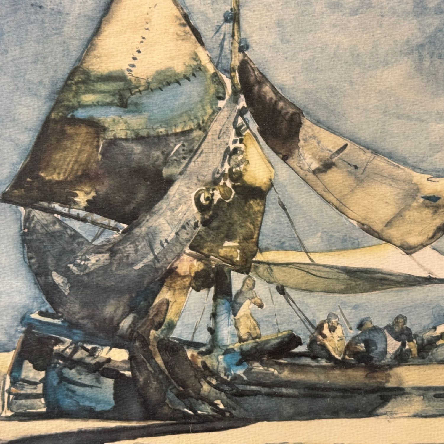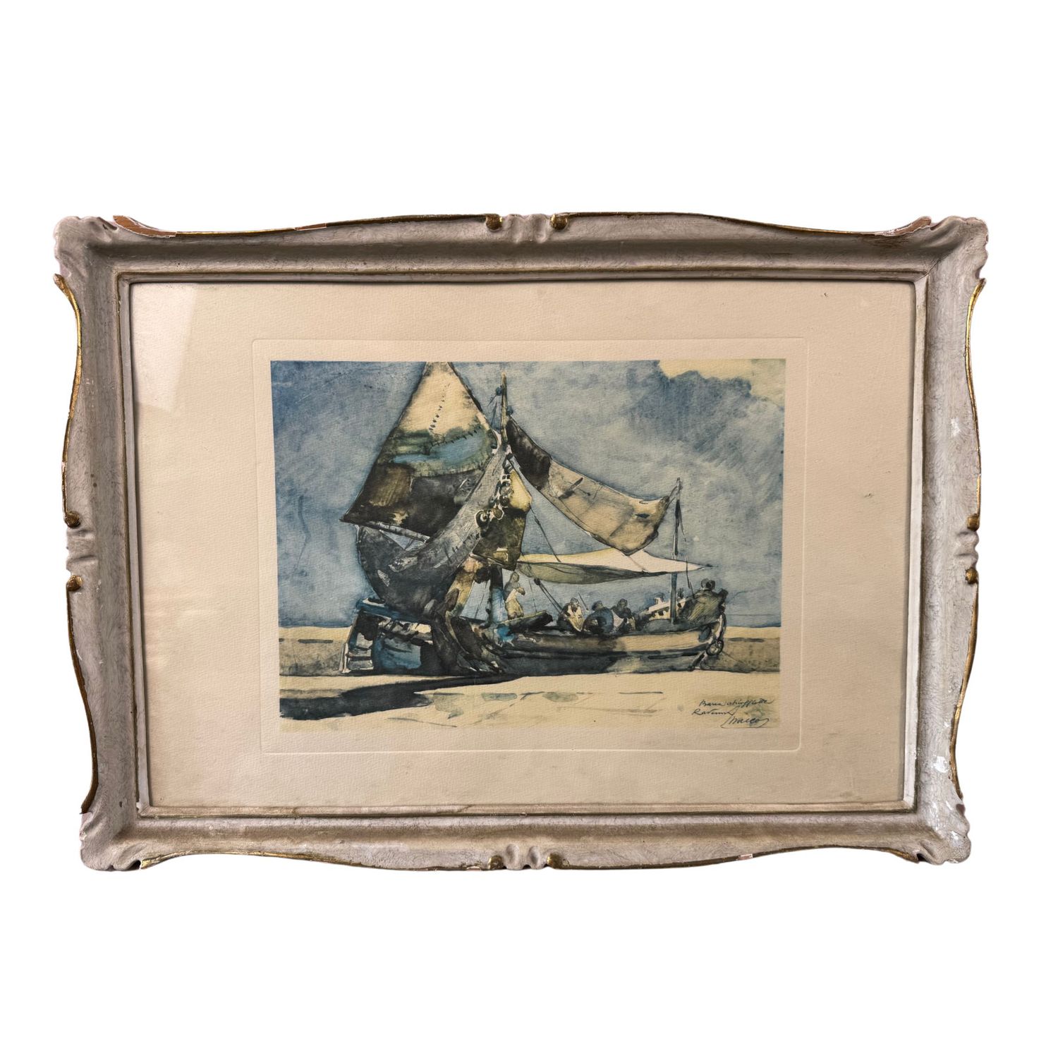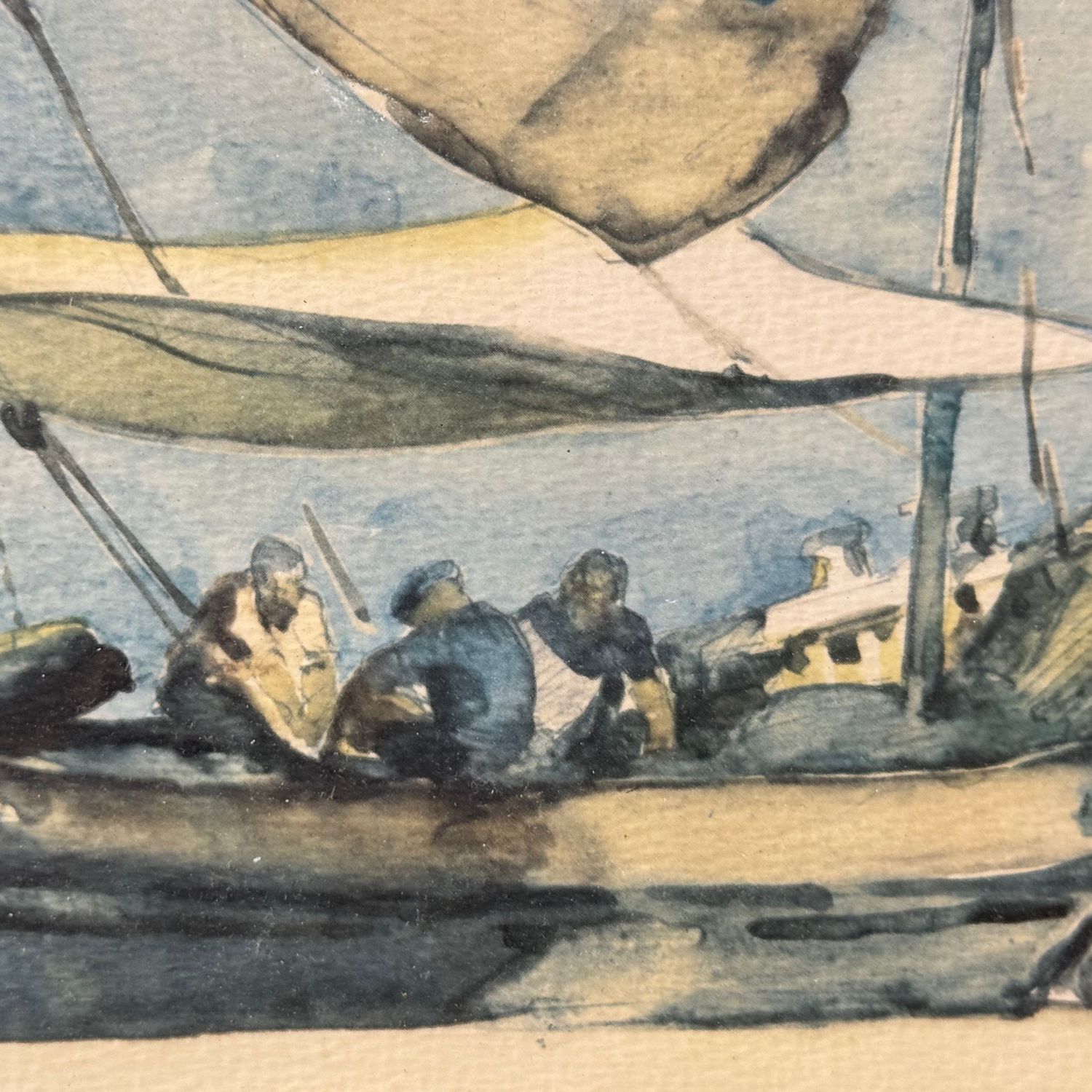 Dipinto acquerello su carta, periodo XX secolo scuola Europea, raffigurante Barca con personaggi.