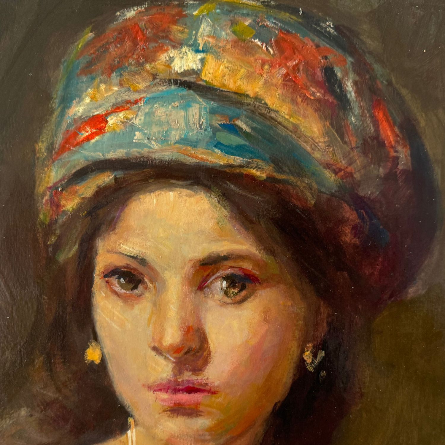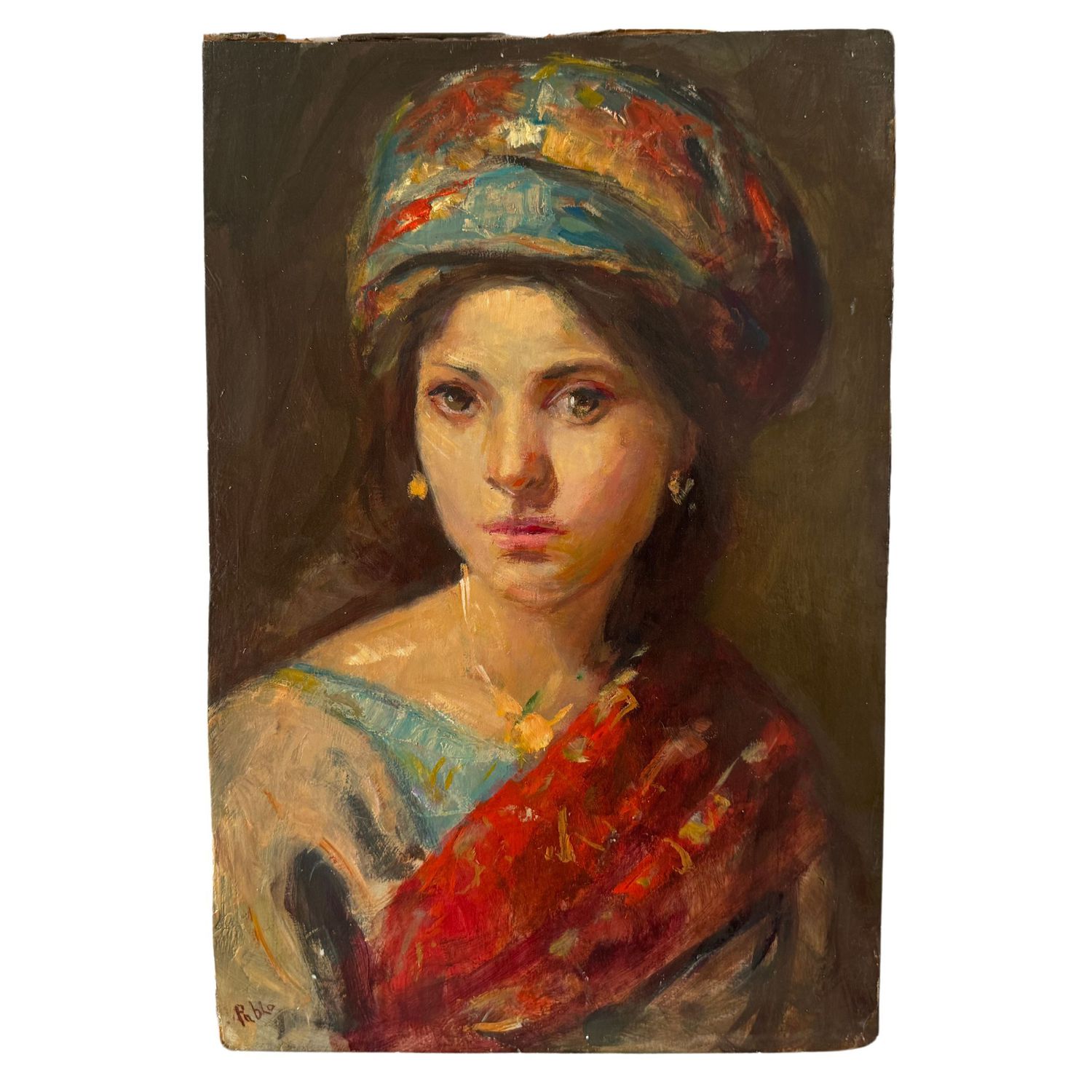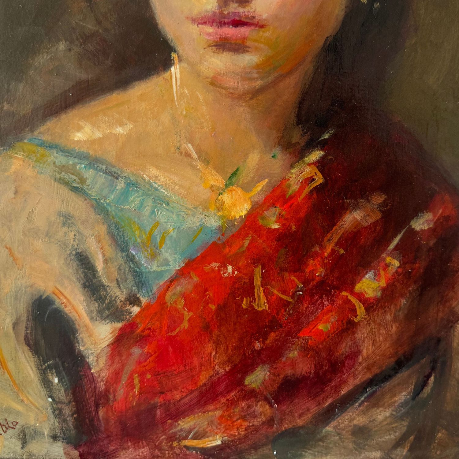 Dipinto olio su pannello, periodo XX secolo scuola spagnola , raffigurante Ritratto di donna