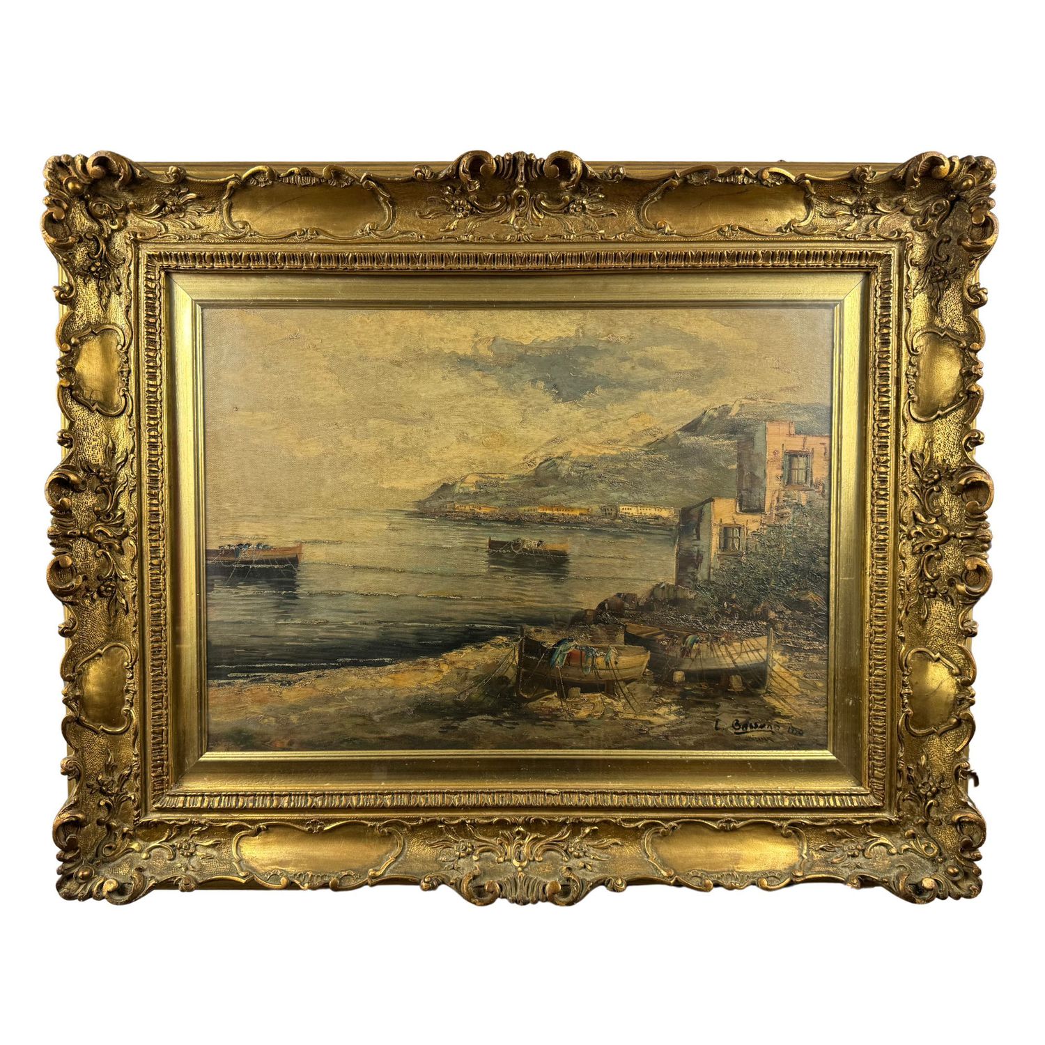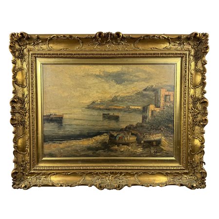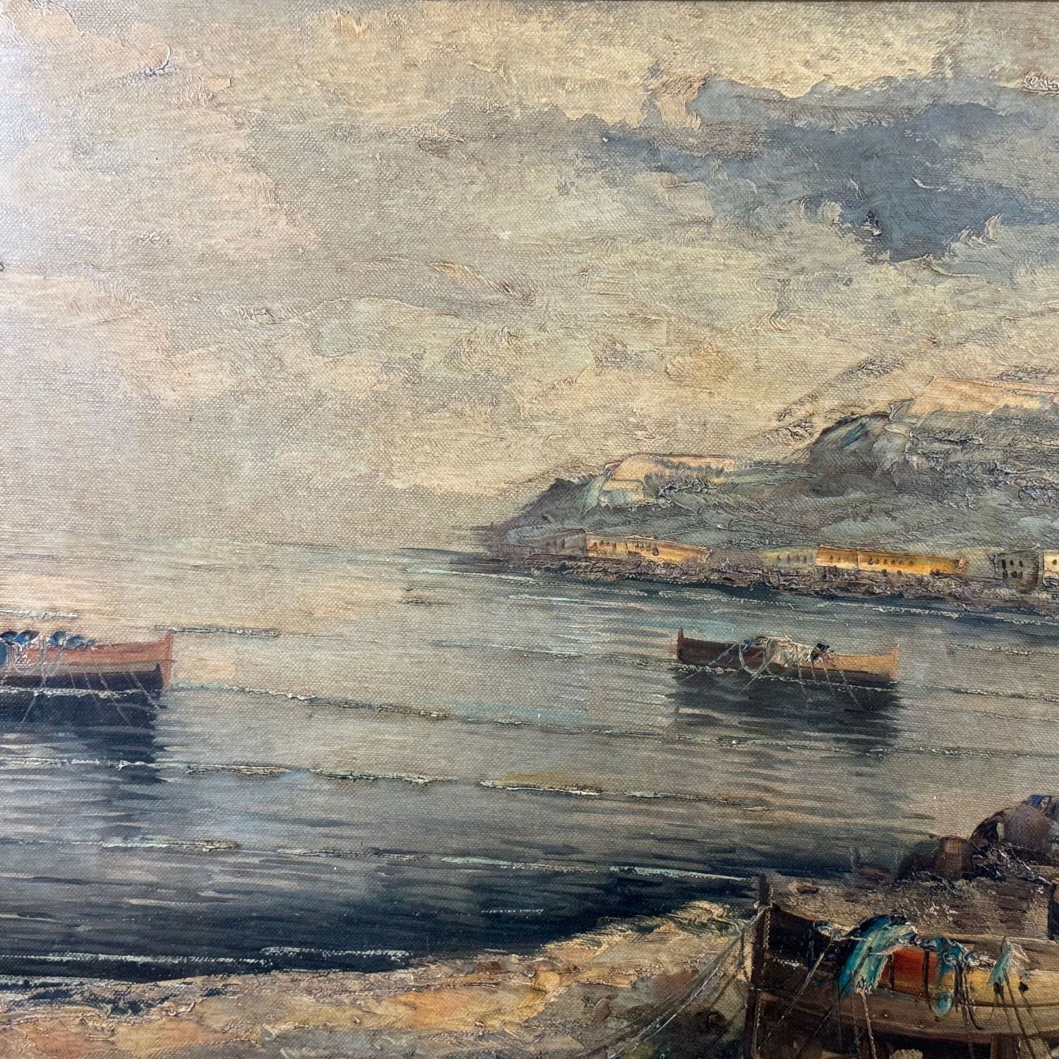 Dipinto olio su tela, periodo XX secolo scuola Italiana, raffigurante Marina napoletana.