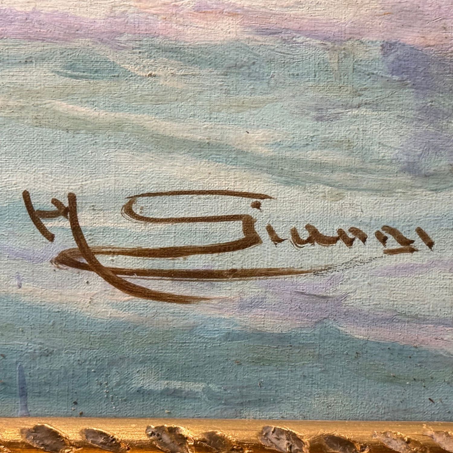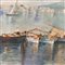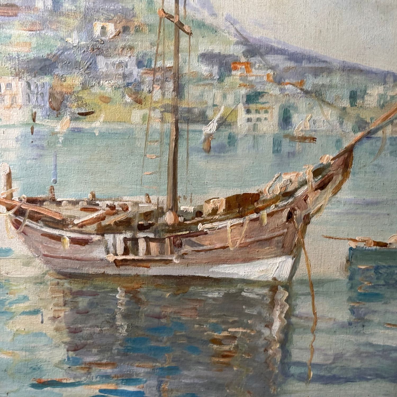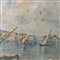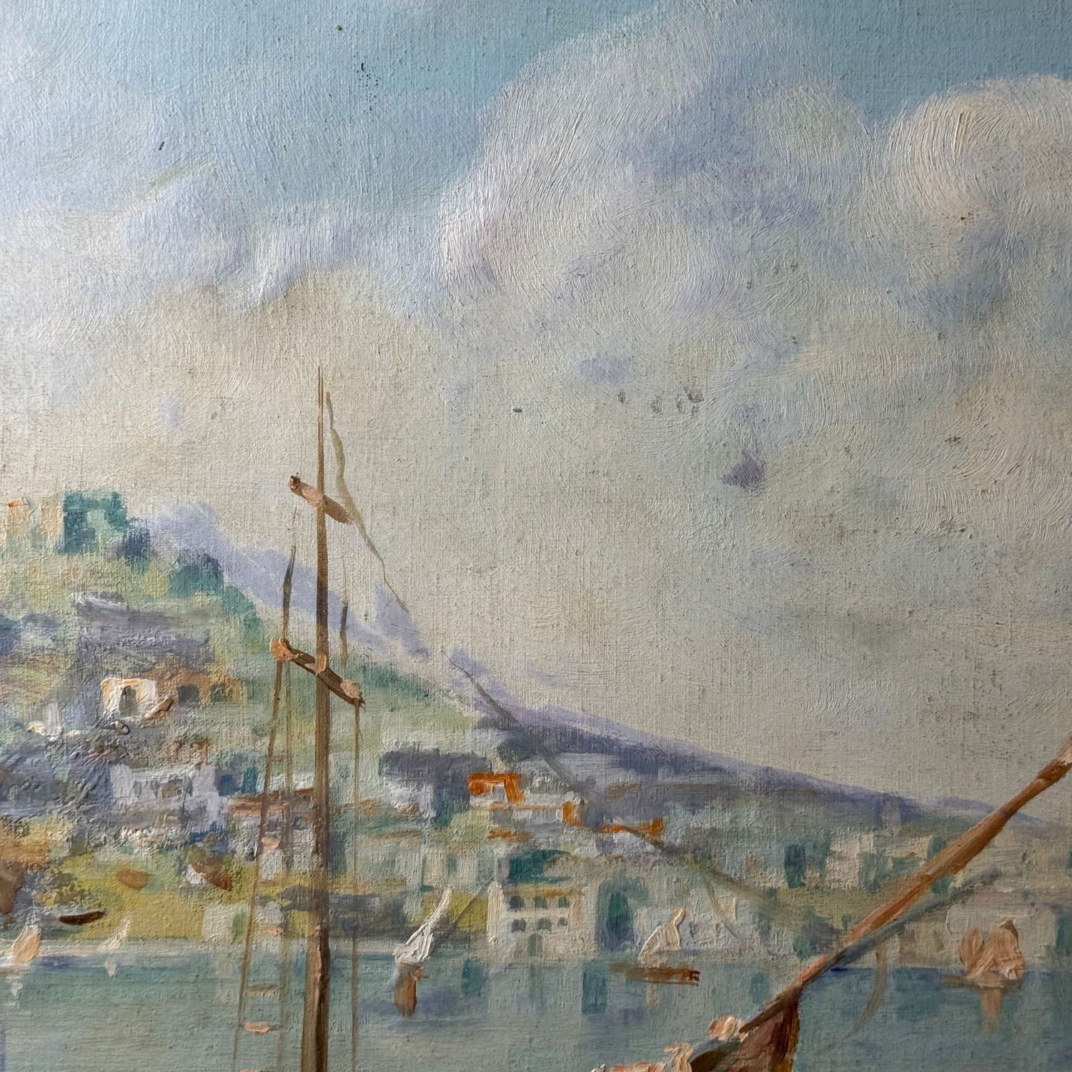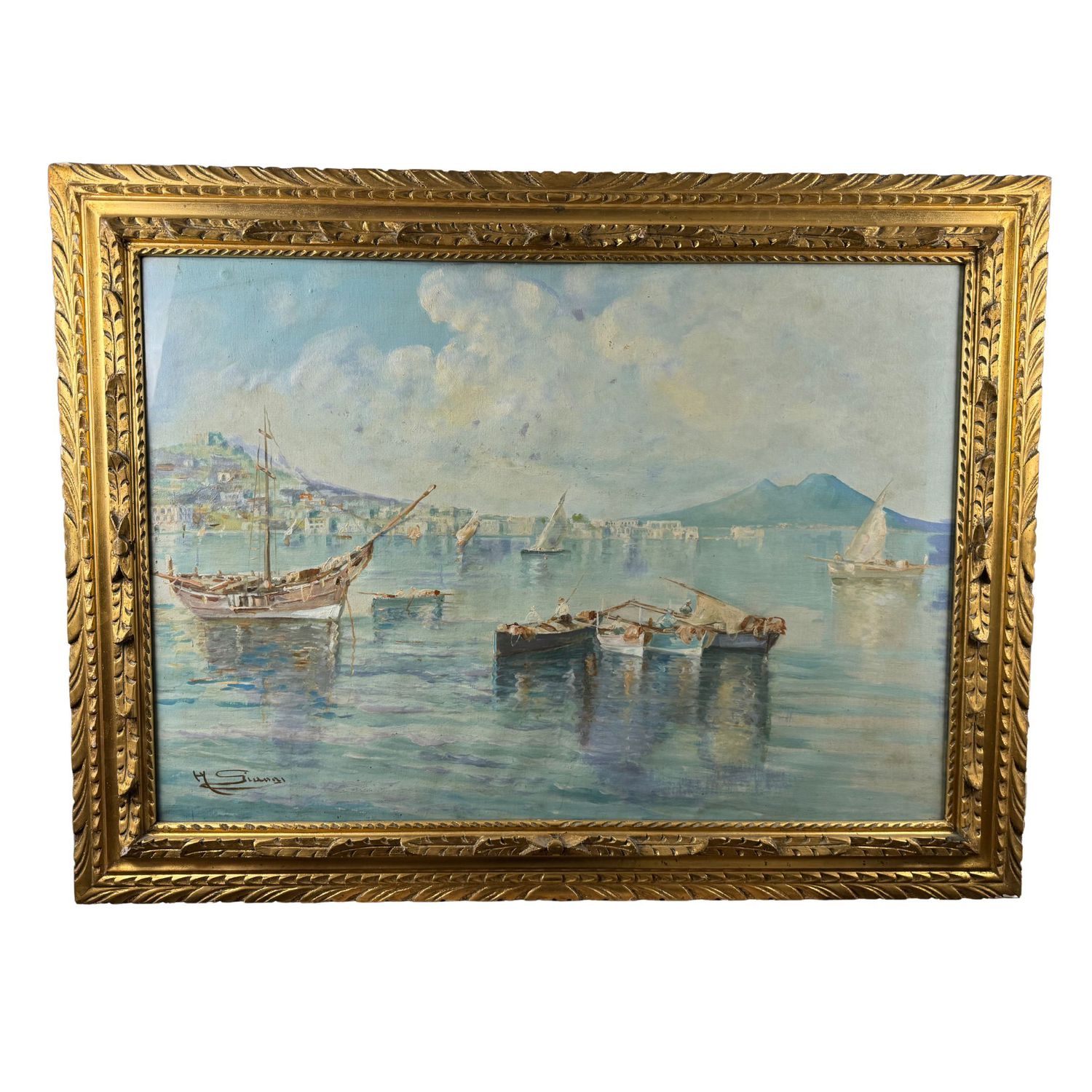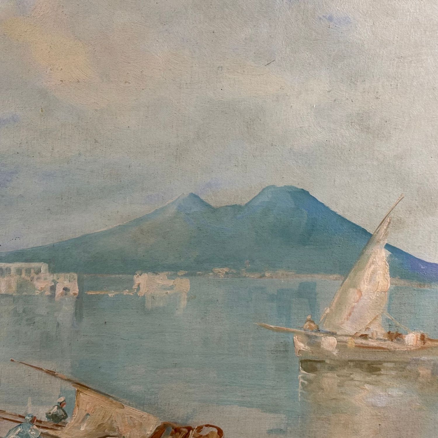 Dipinto olio su tela, periodo inizio XX secolo scuola Italiana da Maria Gianni (1873 - 1956), raffigurante Veduta di Napoli dal mare.
