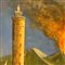 Dipinto guazzo (tempera su carta), periodo XX secolo scuola Italiana, raffigurante Eruzione del Vesuvio a Napoli.