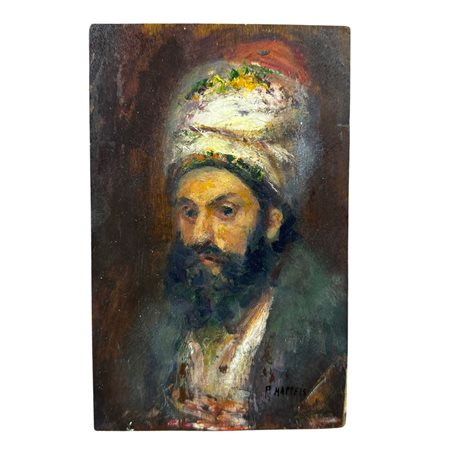 Piccolo dipinto olio su tavola, periodo XX secolo scuola Italiana, raffigurante Ritratto di uomo.