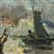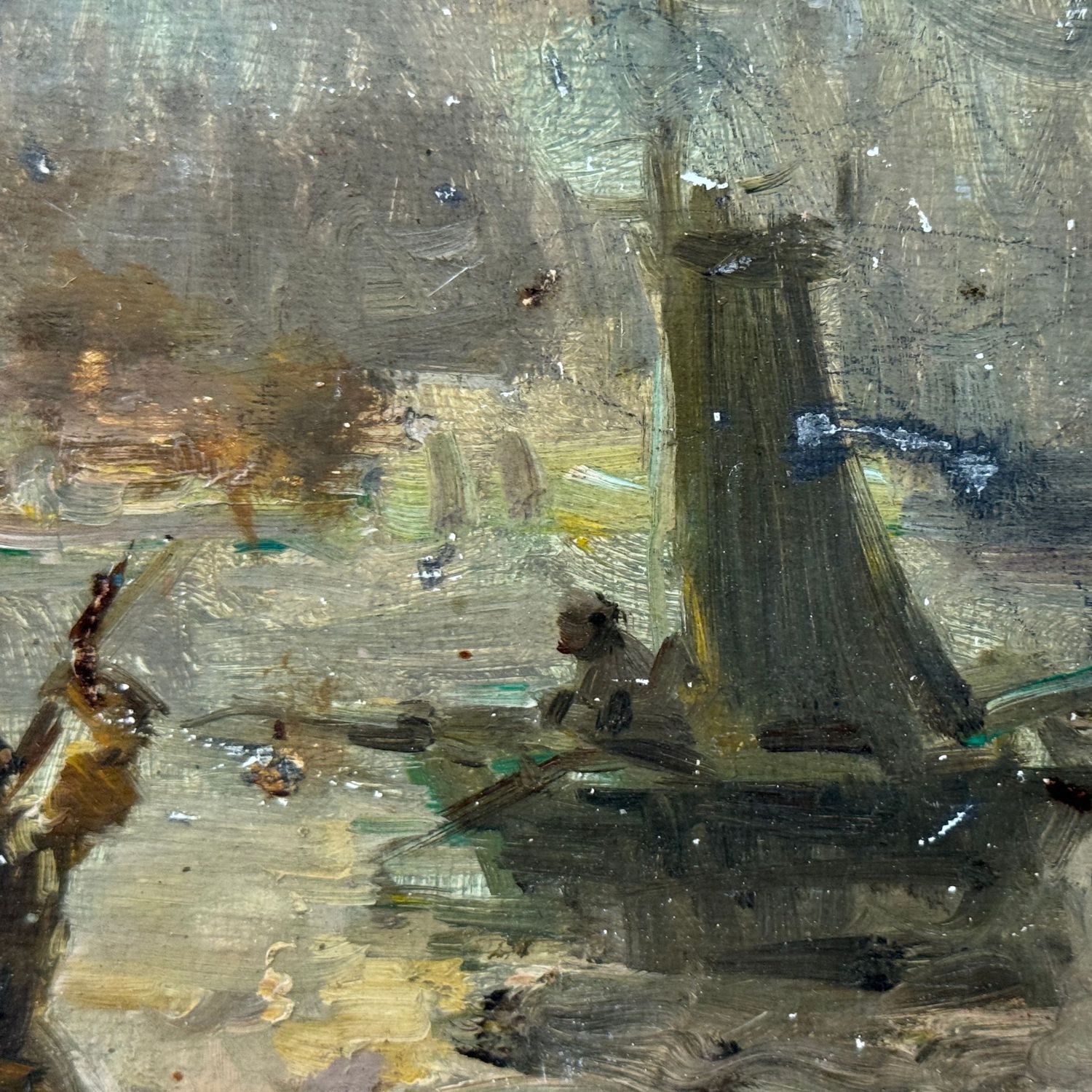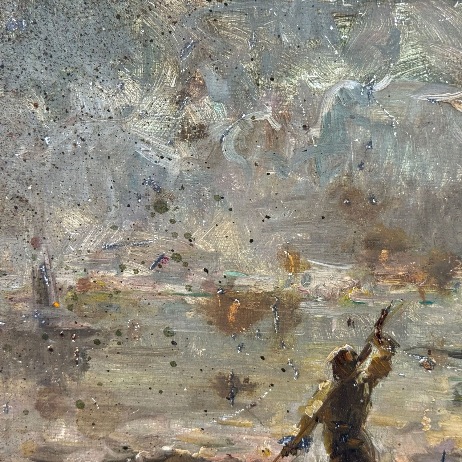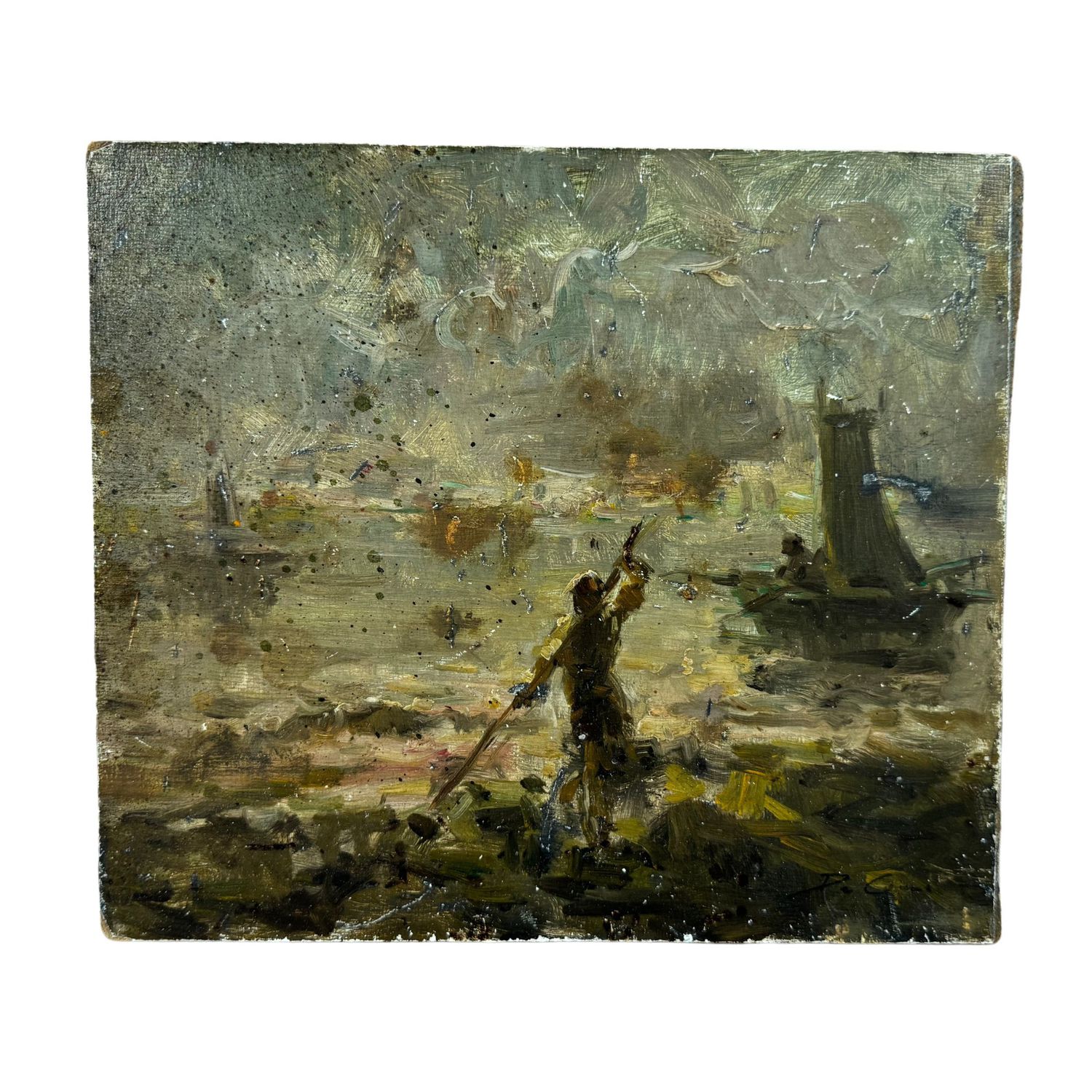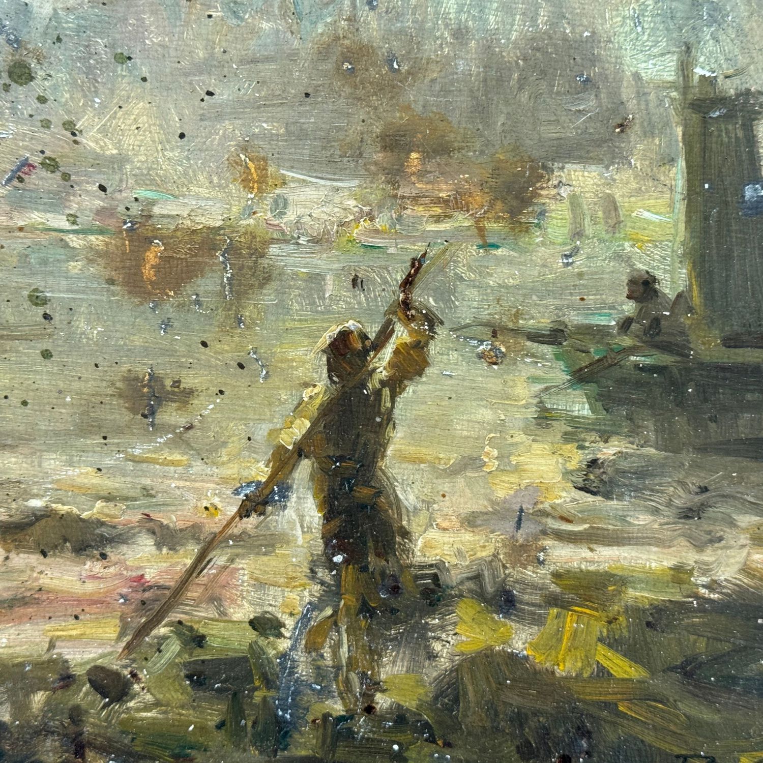 Piccolo dipinto olio su pannello, periodo XX secolo scuola Italiana, raffigurante Bozzetto artistico, marina napoletana.