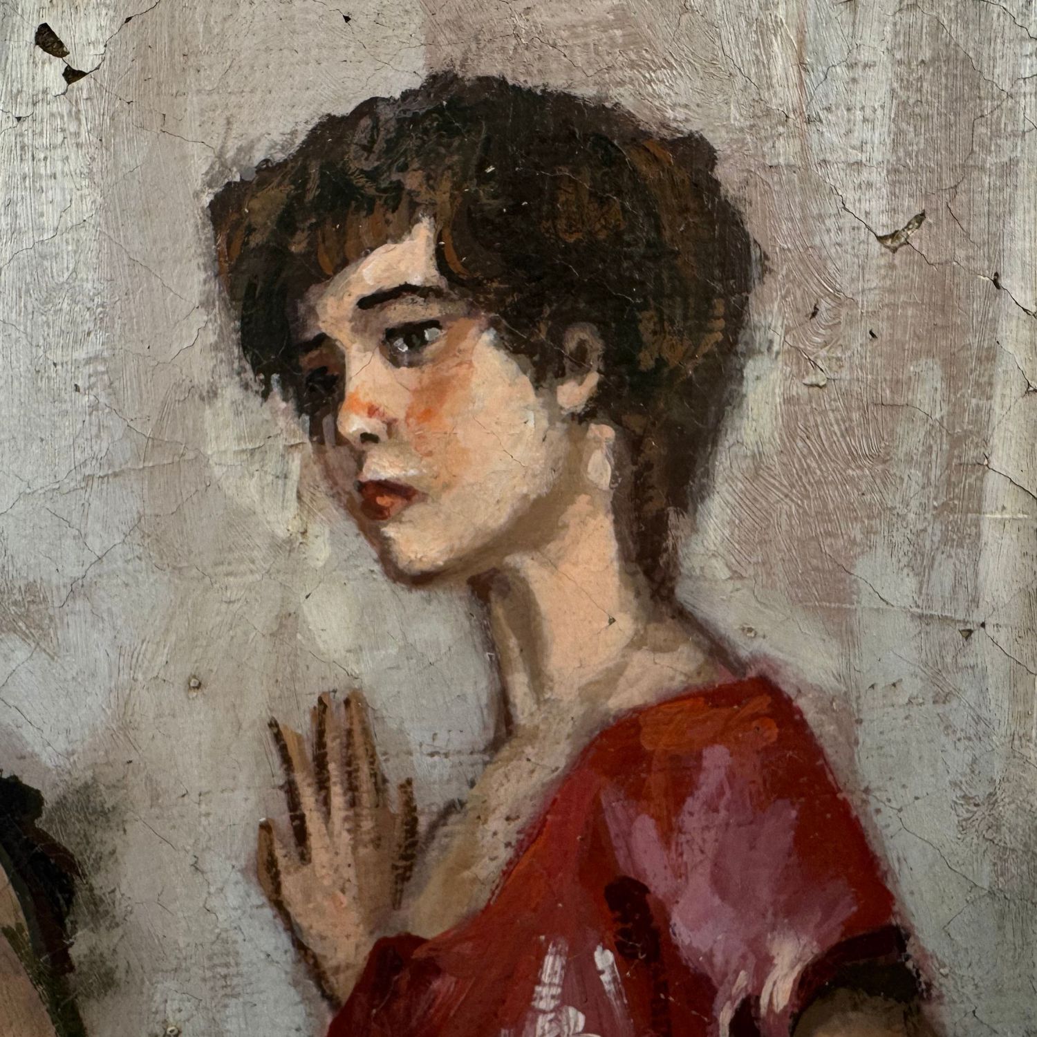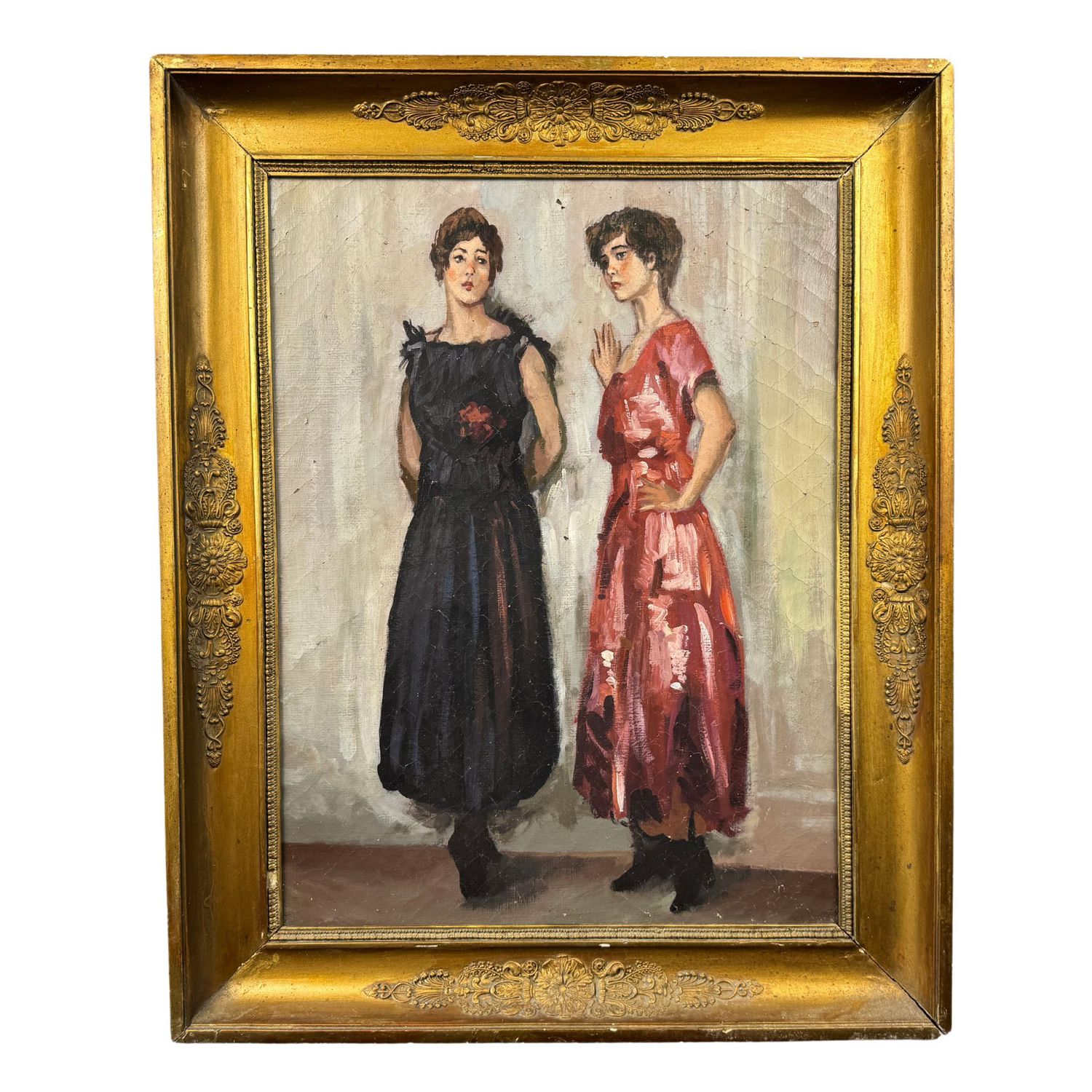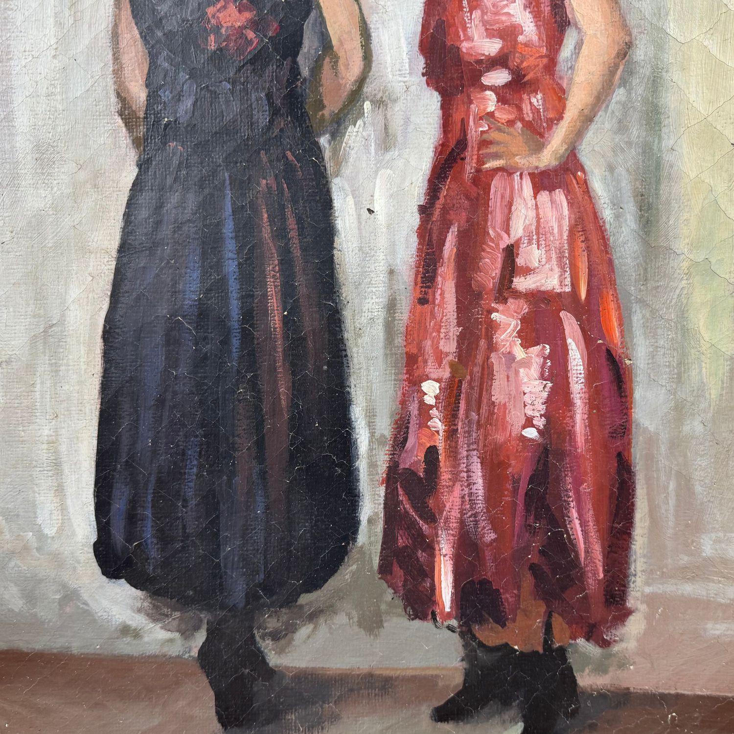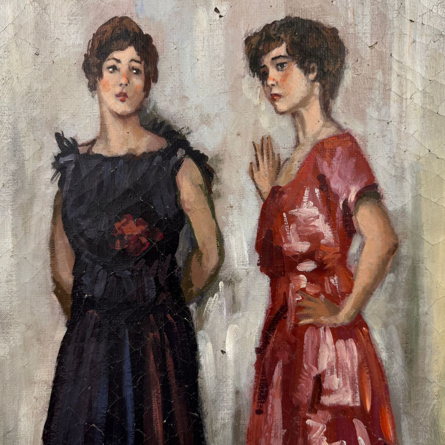 Dipinto olio su tela, periodo 1940 - 1950) scuola Italiana, raffigurante Due donne.