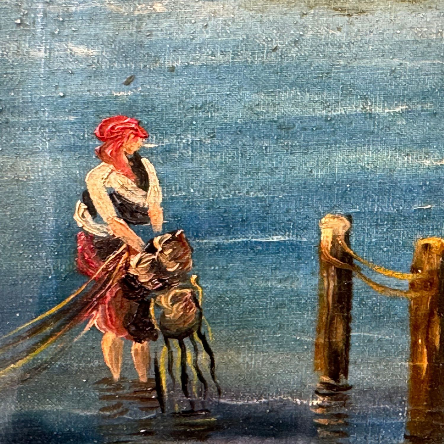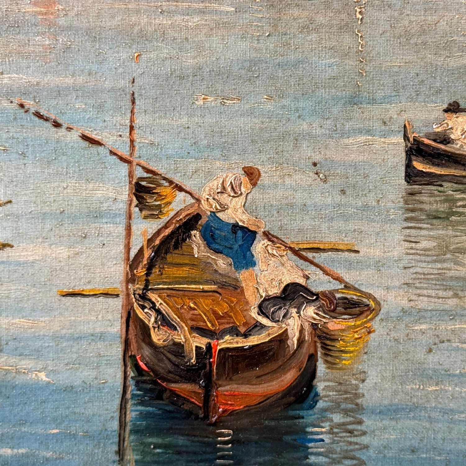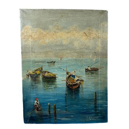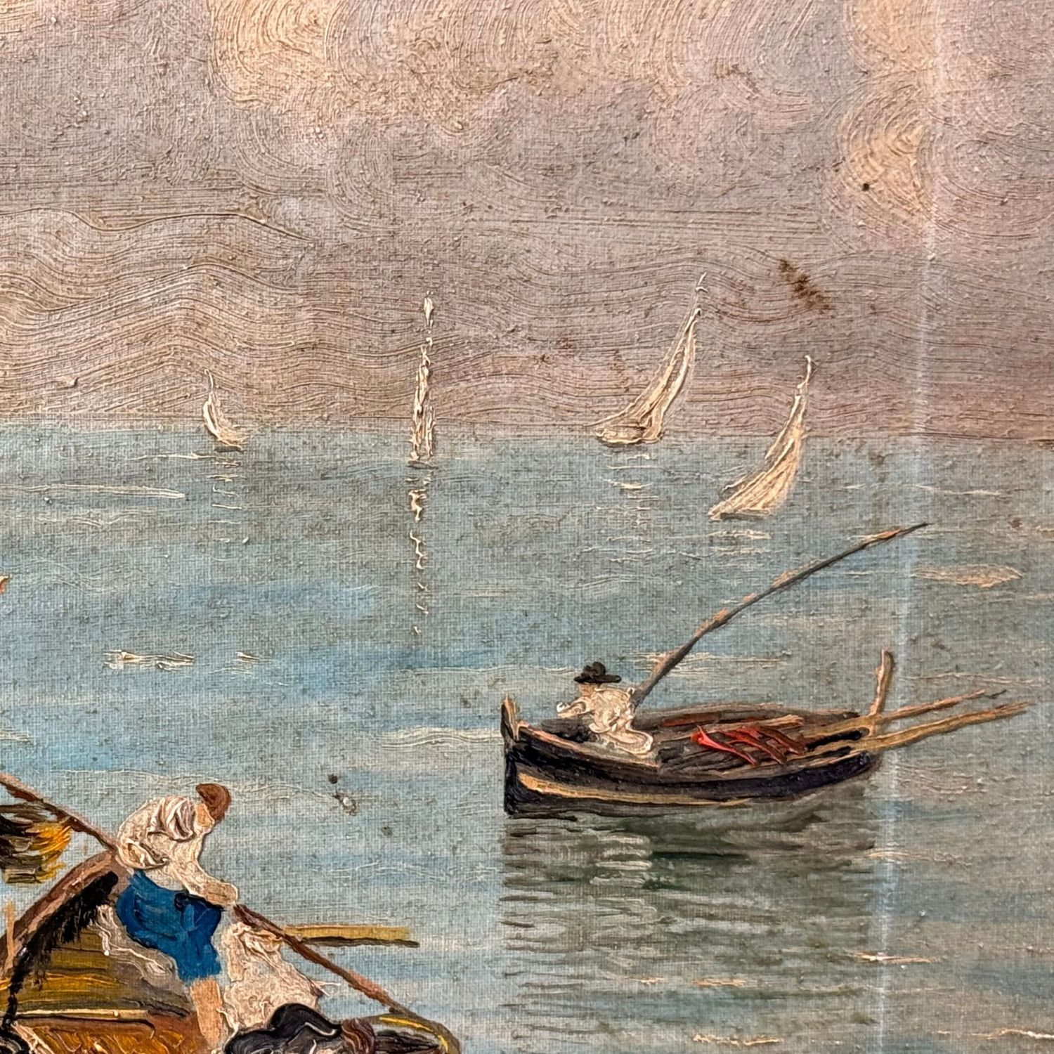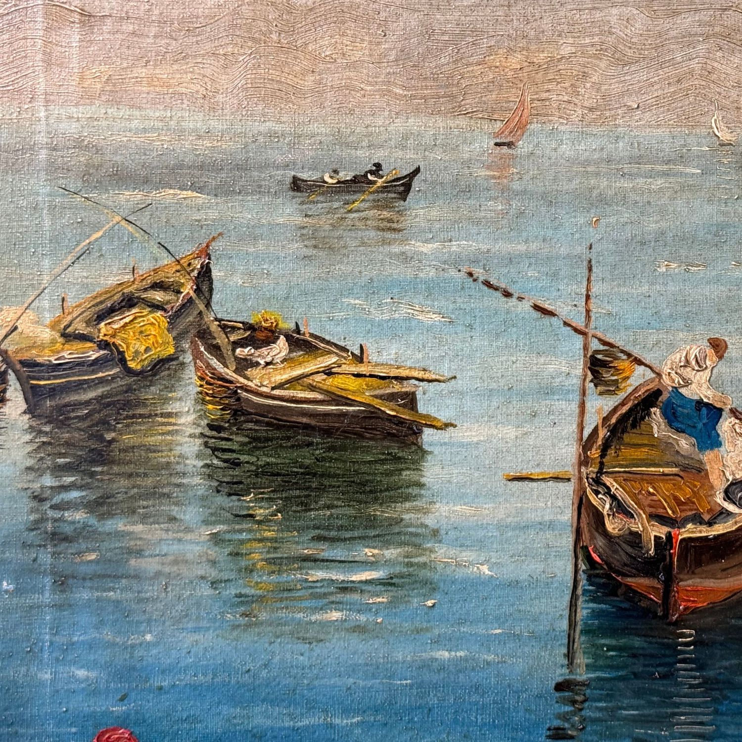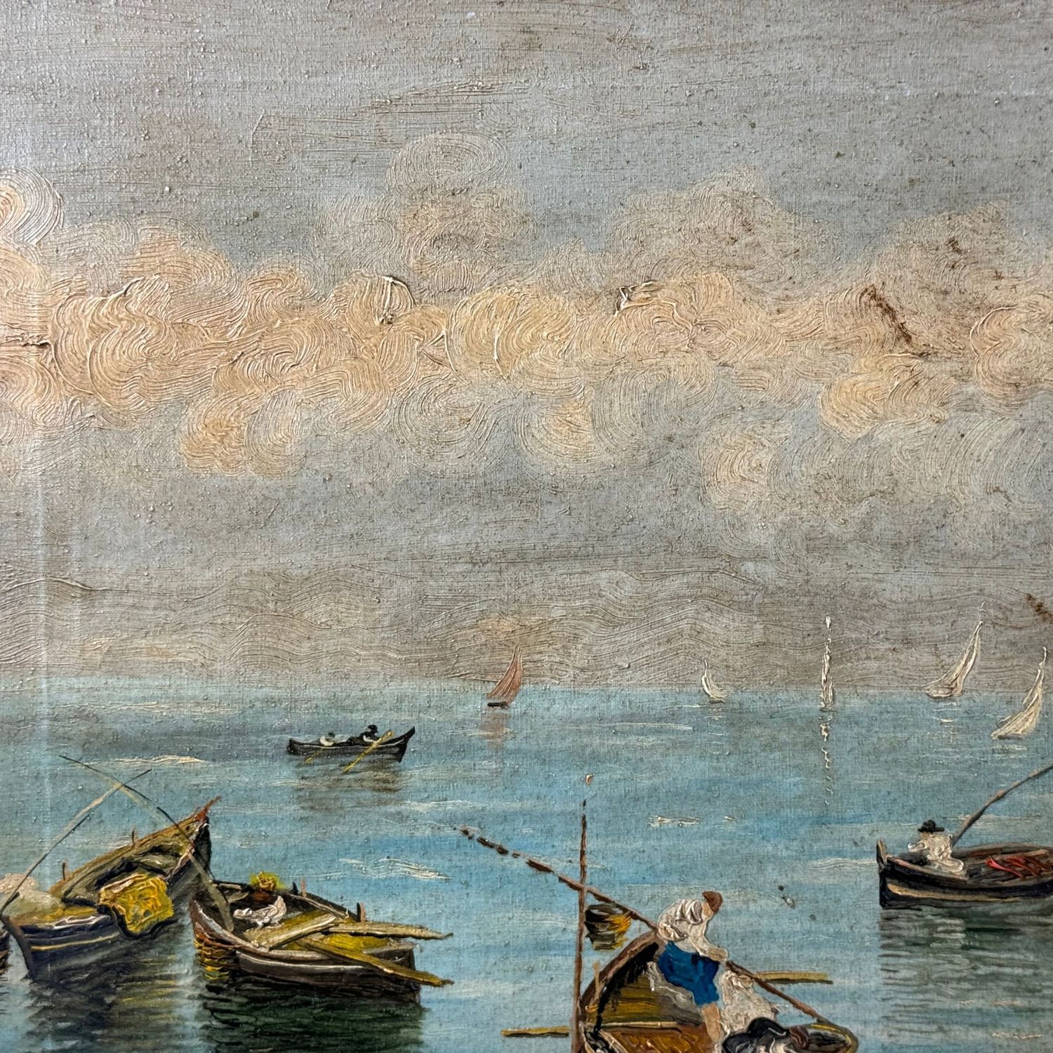 Dipinto olio su tela, periodo XX secolo scuola Italiana, raffigurante Scorcio di marina napoletana.