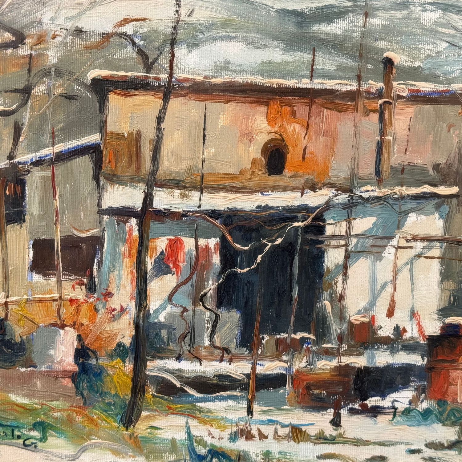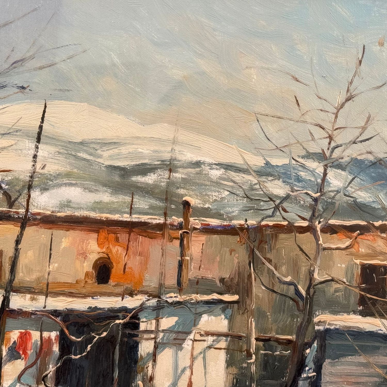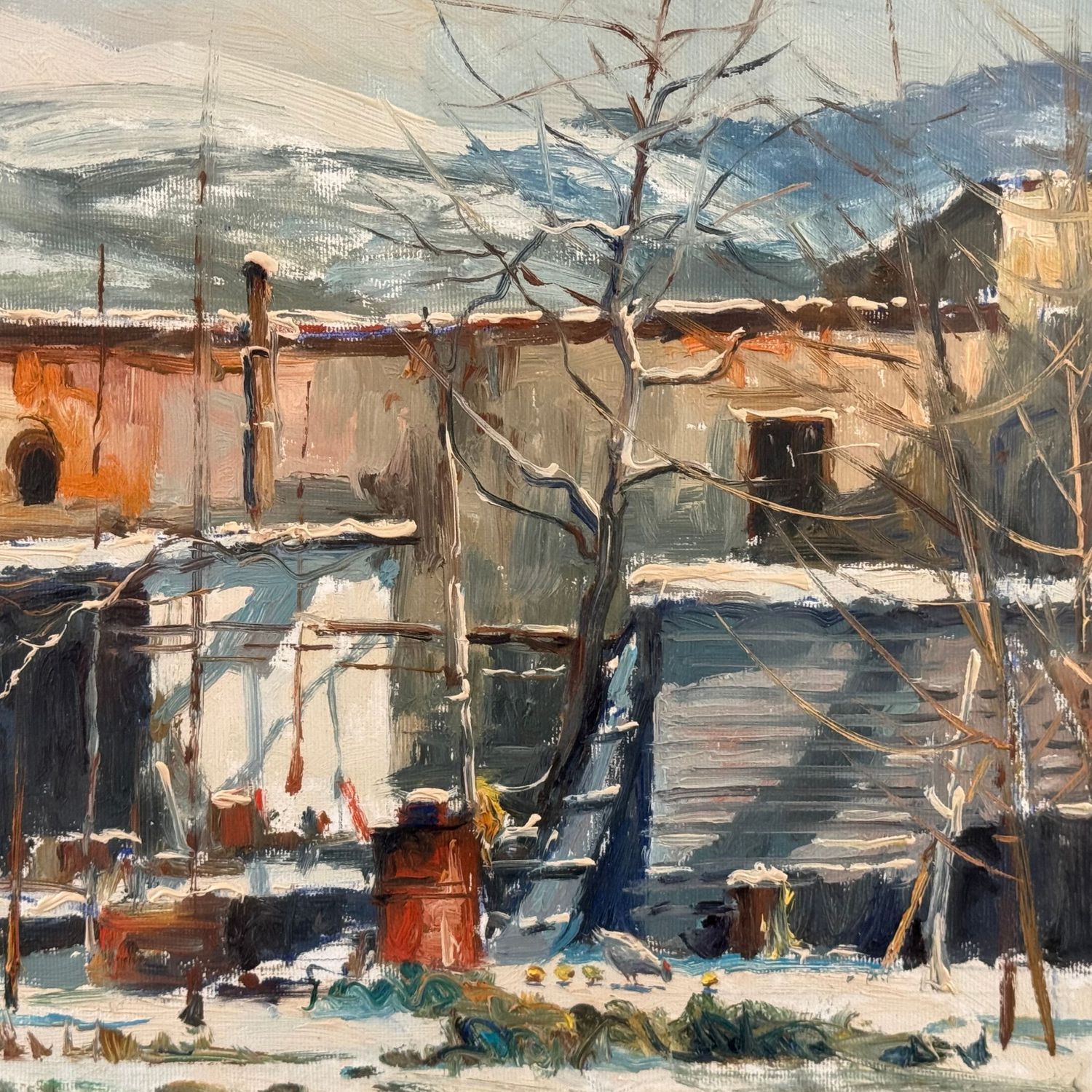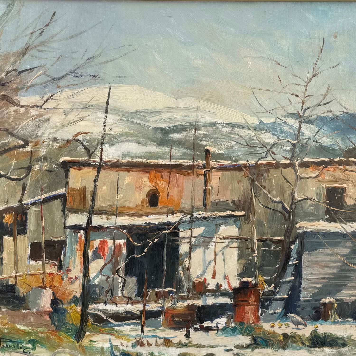 Dipinto olio su tela, periodo XX secolo scuola Italiana, raffigurante "Il faito innevato".