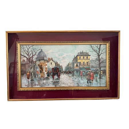 Dipinto olio su tela, periodo XX secolo scuola Italiana, raffigurante Scena Parigina.