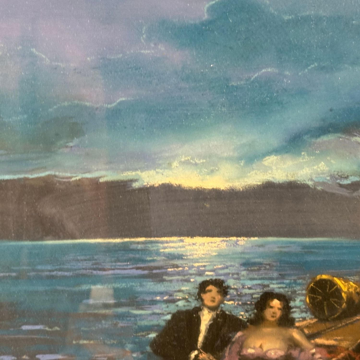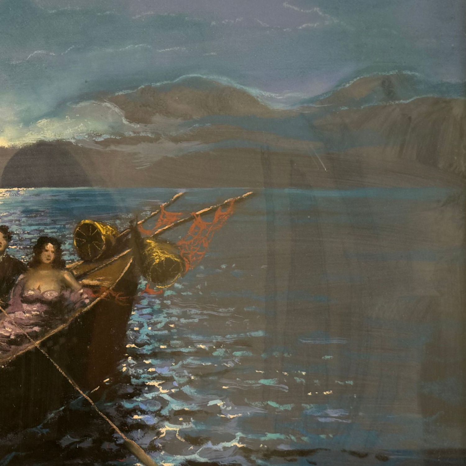 Dipinto olio su tavola, periodo XX secolo scuola italiana, raffigurante Scena galante sul mare.