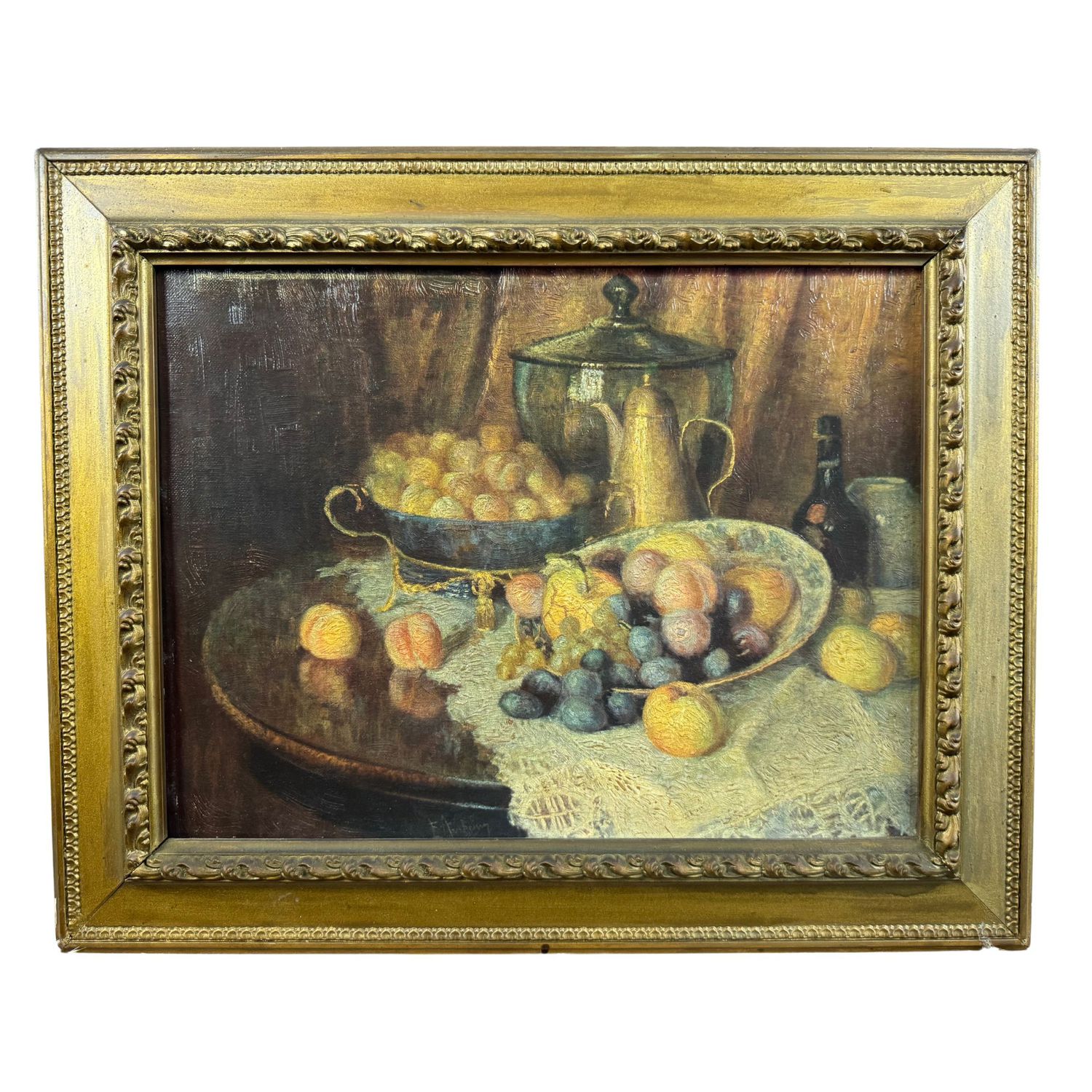 Dipinto olio su cartoncino, periodo XX secolo raffigurante Natura morta.