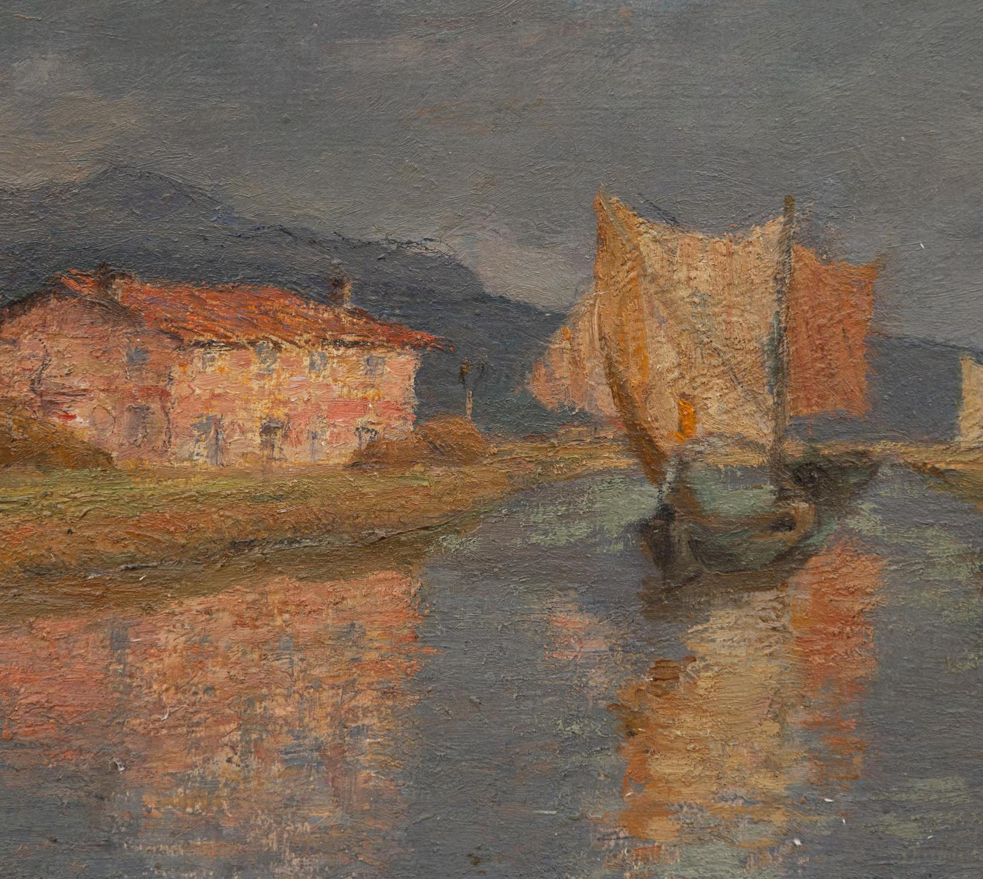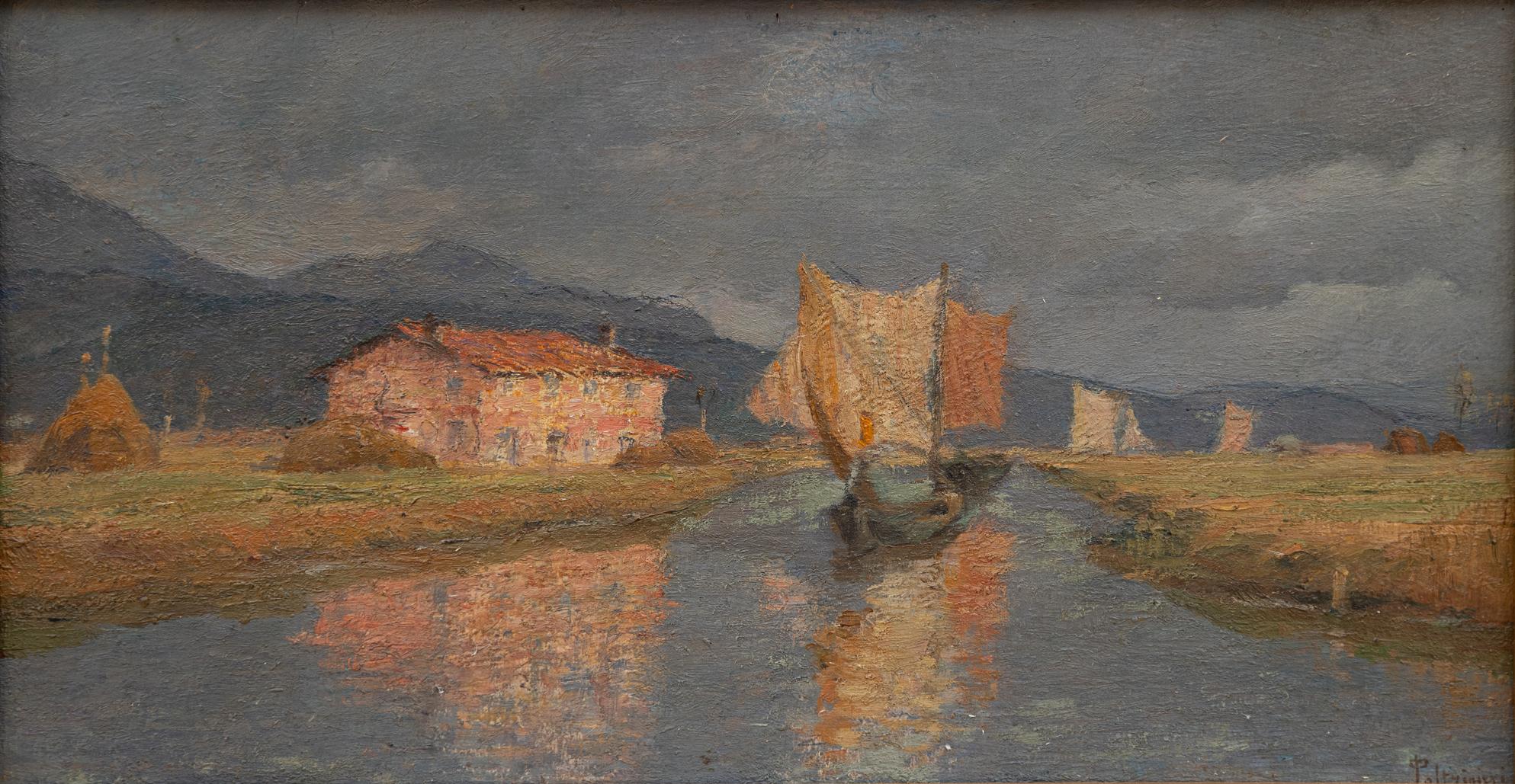 Oreste Paltrinieri - Canale a Viareggio - Verona 1873 - Viareggio (LU) 1966 - Olio su tavola cm 26x49