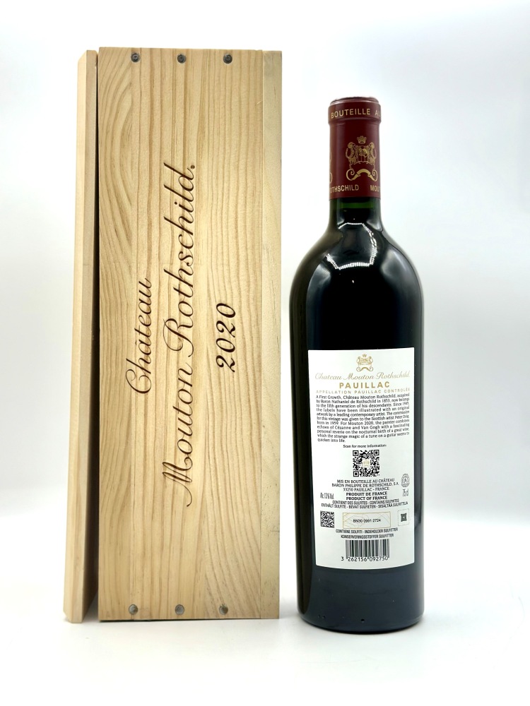 Francia, Chateau Mouton Rothschild - 1 bottiglia (bt), annata 2020. Livello: entro il collo (WN). Confezione: scatola di legno originale (OWC). Condition report: etichetta e capsula in buone condizioni.