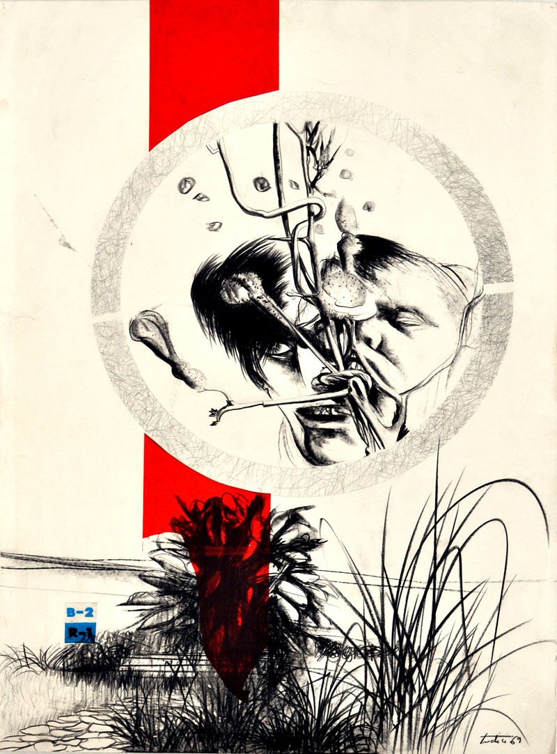 PIERO TREDICI Senza titolo, 1969 Tecnica mista e collage su cartoncino cm. 70x50 Firma e data in basso