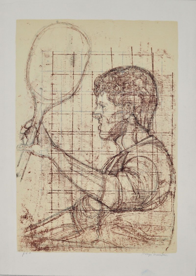 LORENZO TORNABUONI Tennista Litografia a colori – es. P. D. A. cm. 70x50 Firma e tiratura in basso