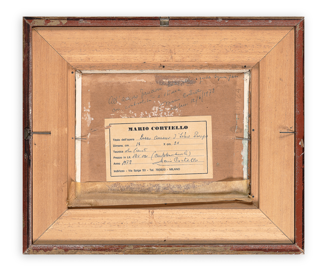Etichetta dell'Artista con firma e caratteristiche tecnica dell'opera al retro