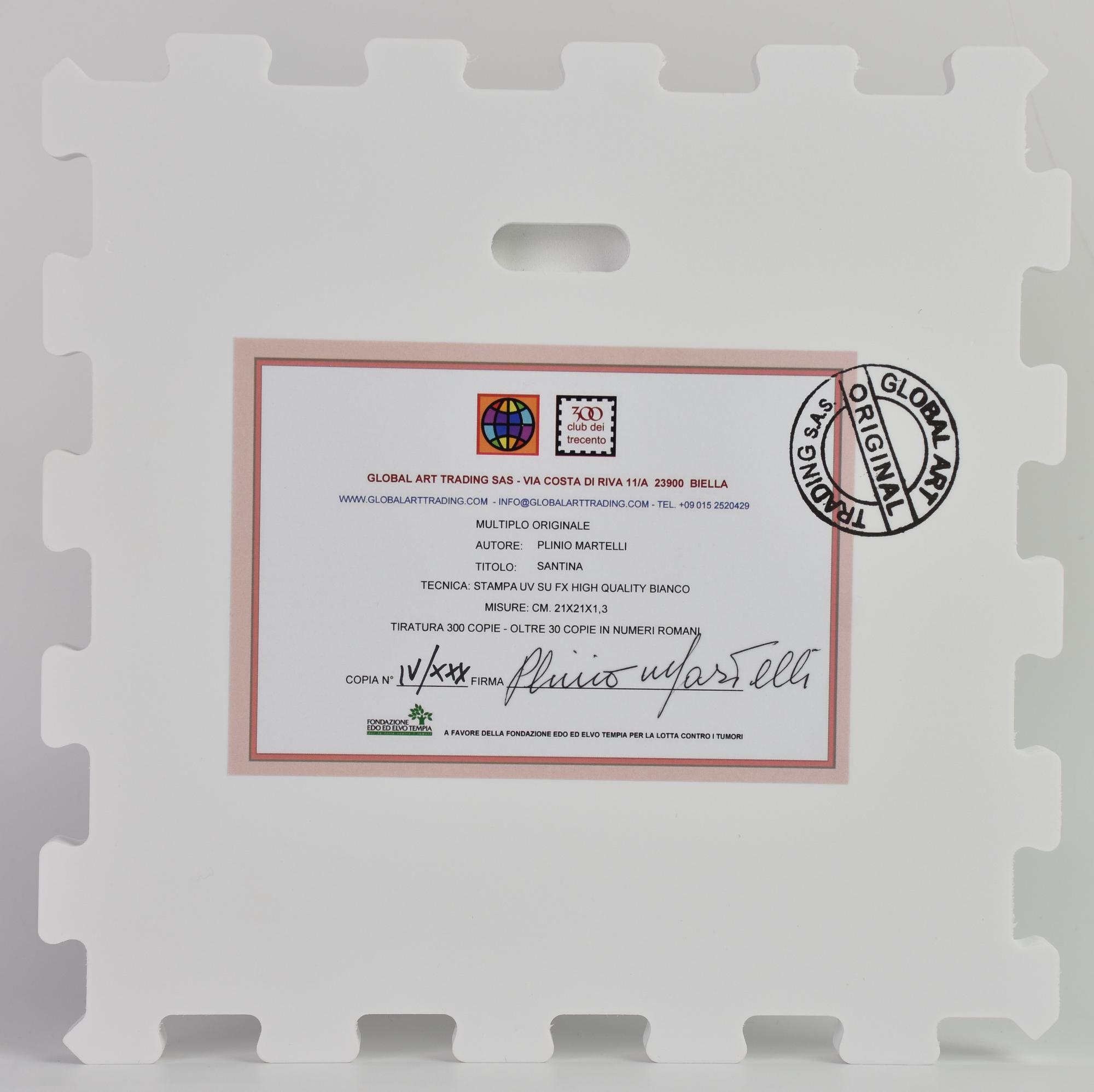 Lot 103 | Plinio Martelli SANTINA stampa UV su FX high quality bianco, cm 21x21x1,3;...