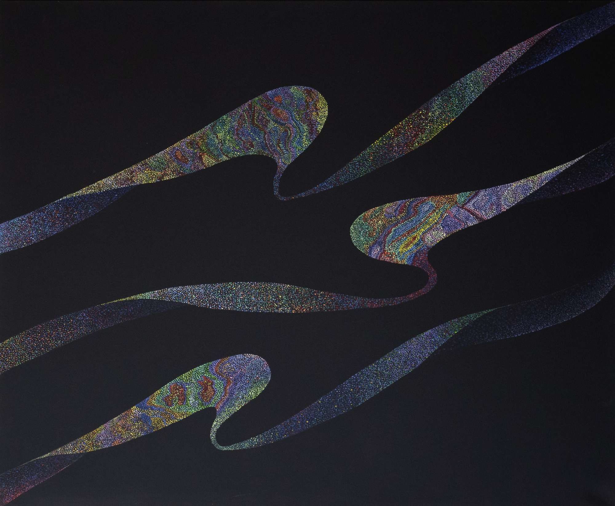 Lot 41 | Paolo Buzi, 3 di noi, 2015, acrilico su tela, cm 100x120, firma e titolo al...