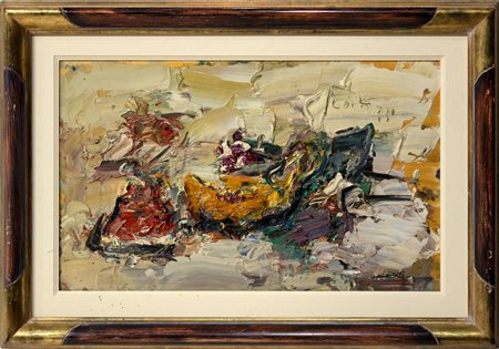 Sergio Scatizzi, Natura, anni Duemila, olio su tavola, cm 43,3x70, archivio delle opere del Mestro Sergio Scatizzi, pubblicato in 'Scatizzi. Archivio dell'opera pittorica Vol.I, 1945-2005' pag.322