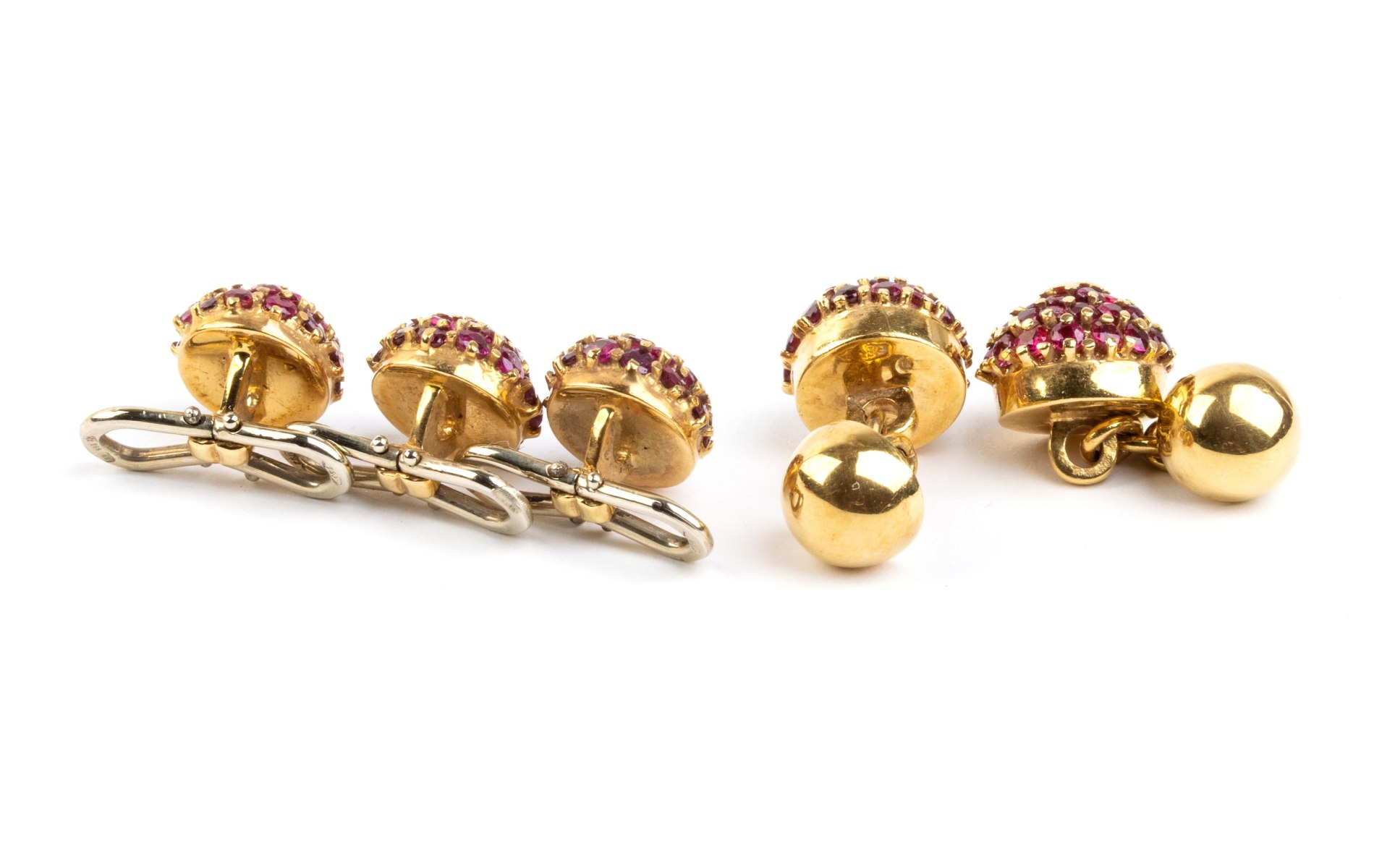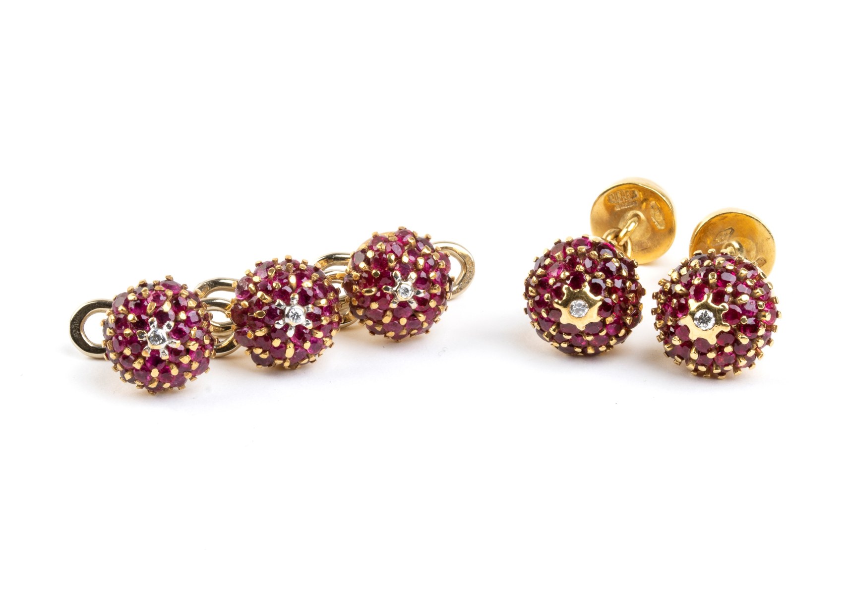 Pippo Perez Coppia di gemelli da polso e bottoni da sparato in oro e rubini