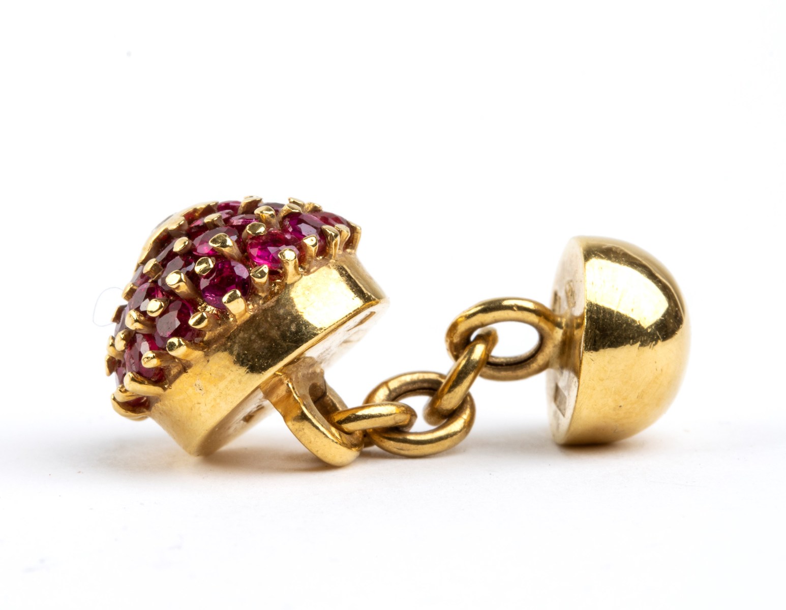 Coppia di gemelli da polso e bottoni da sparato in oro e rubini