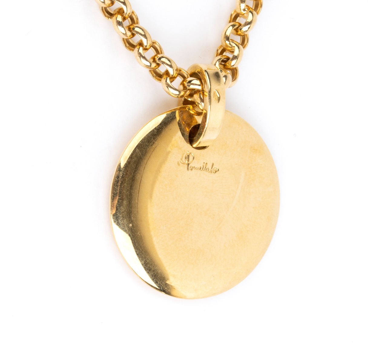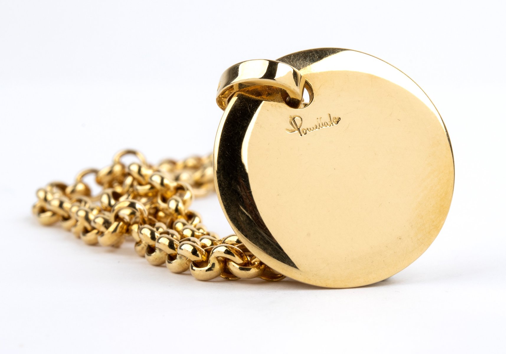Punzonato "750 - POMELLATO - 469 MI". Lunghezza catena 27 cm. Dimensioni pendente 2,5 x 2 cm. Peso 16 gr.