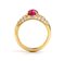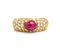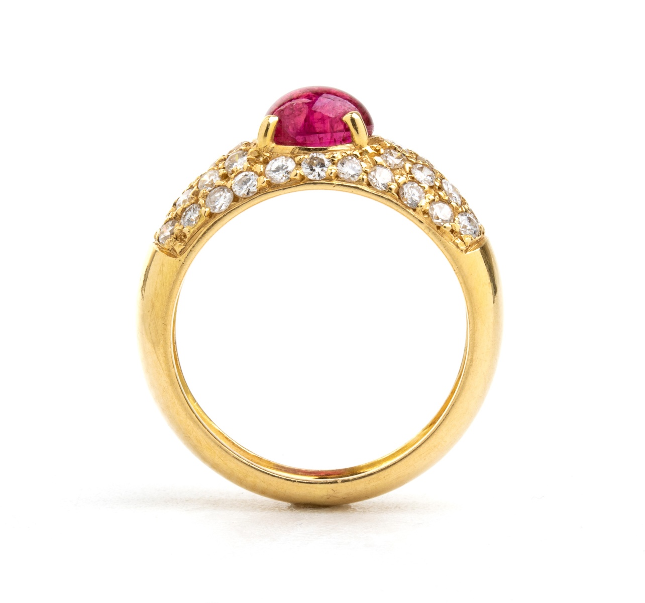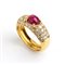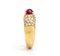 in oro giallo 18k, con rubino contornato da pavé di diamanti.