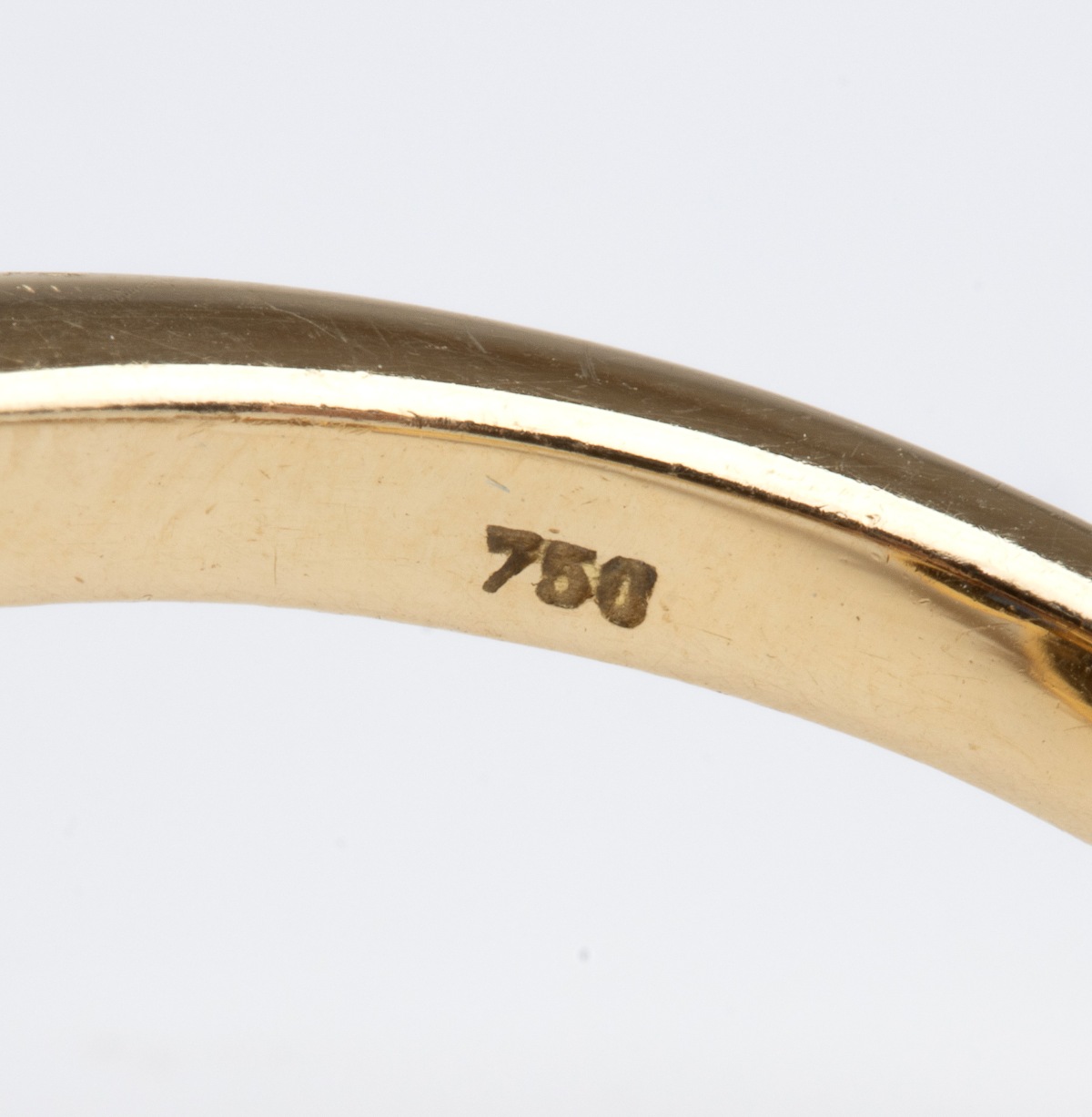 Punzonato "750". Misura IT 18 - Misura USA 8 1/2. Dimensioni fronte 1,5 x 2 cm. Peso 10,2 gr.