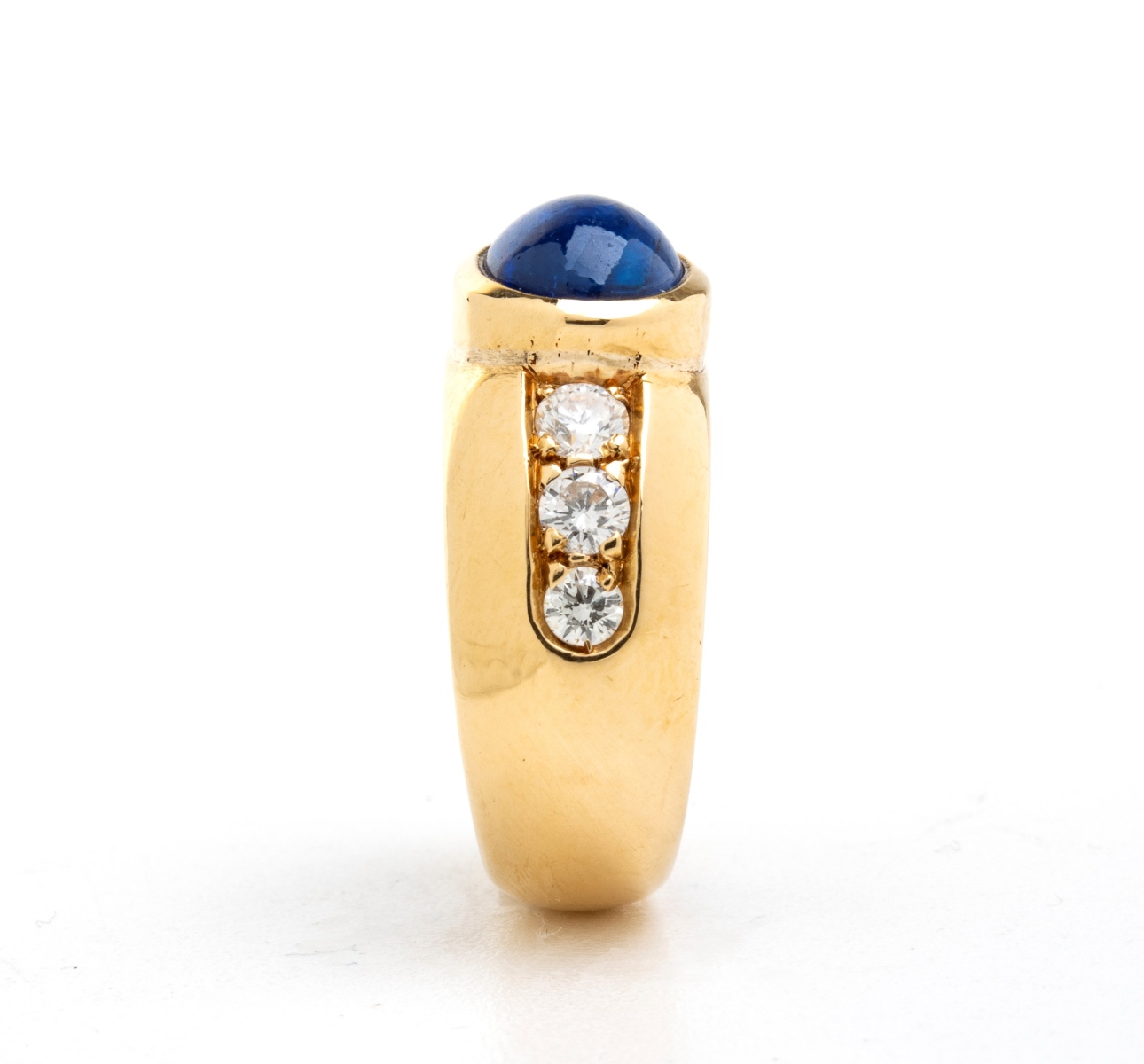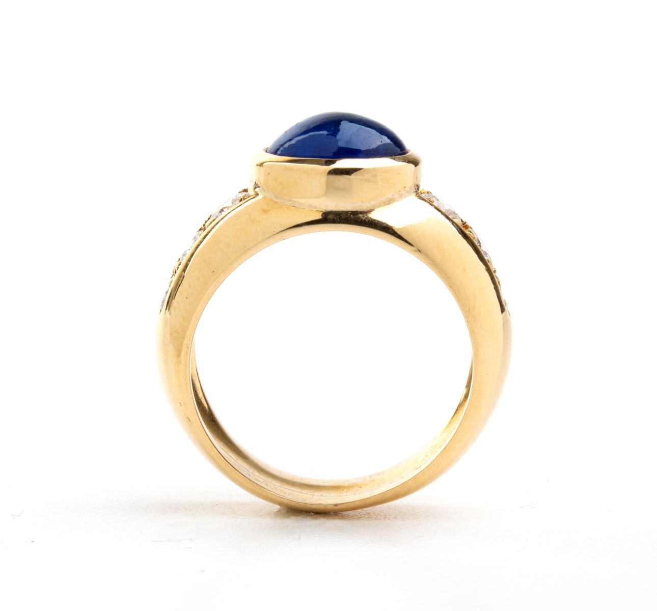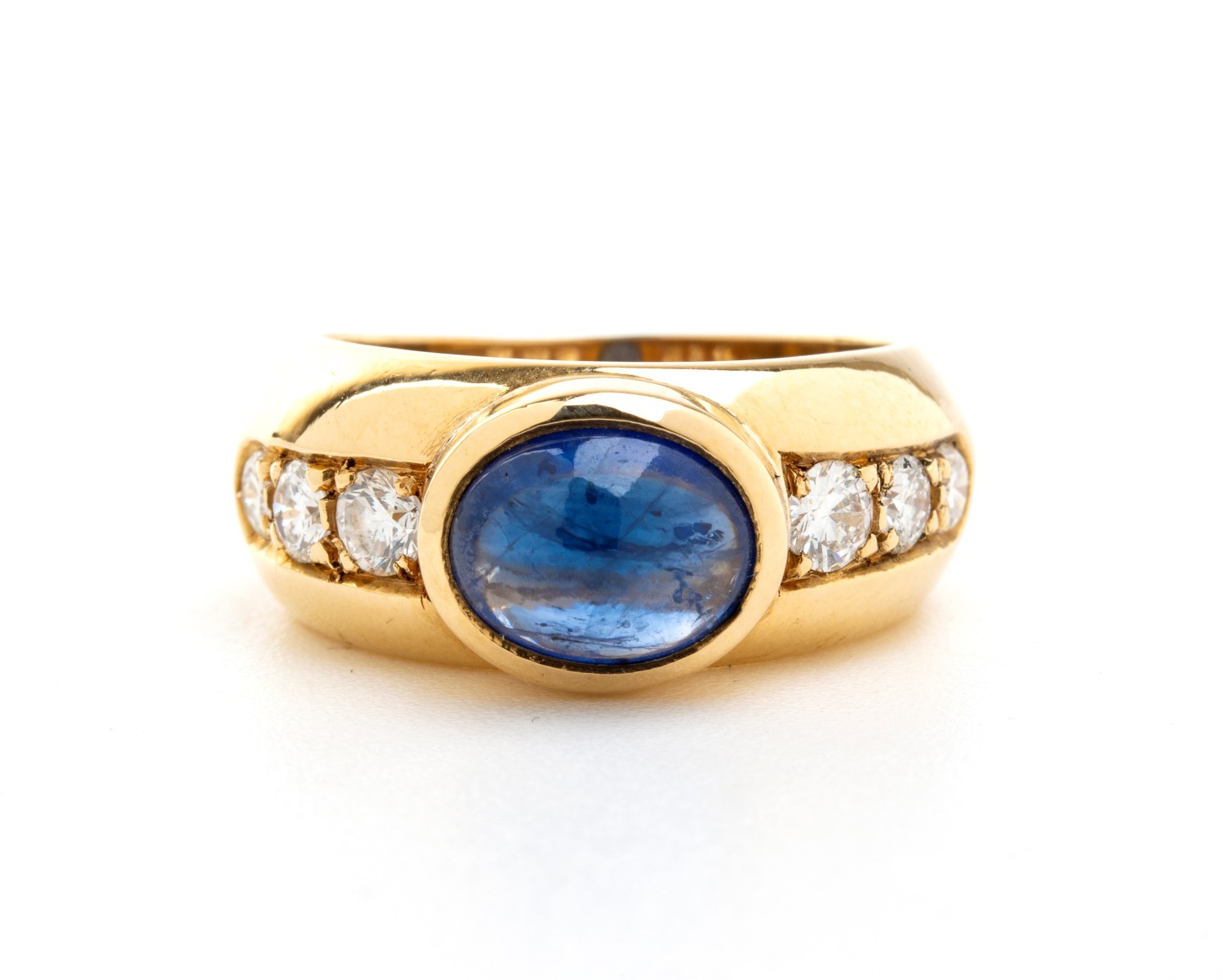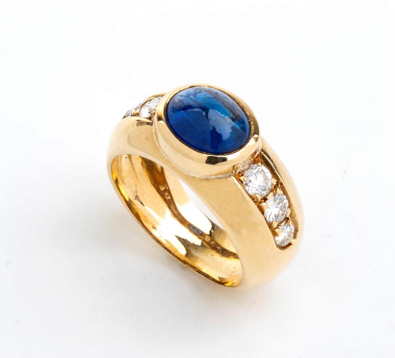 Anello in oro con zaffiro e diamanti montatura a fascia impreziosita da...