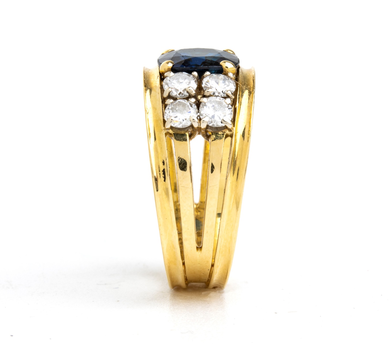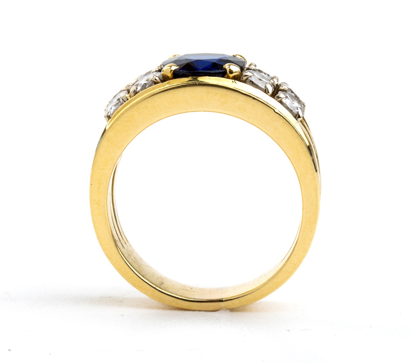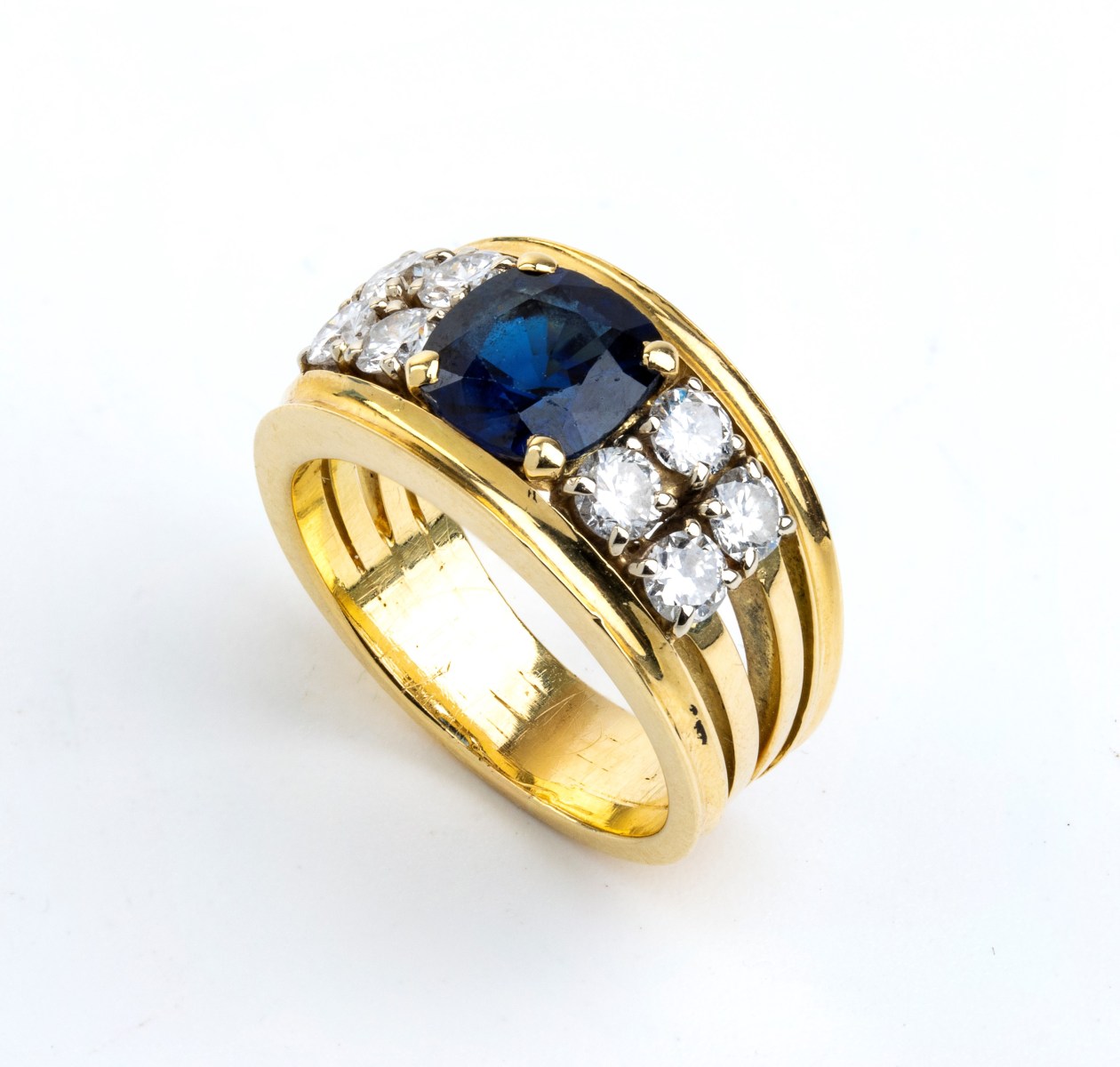 Anello in oro con zaffiro e diamanti modellato come una fascia, incastonato...