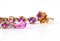 in oro rosa 18k, con linea snodata di corindoni rosa alternati a diamanti.