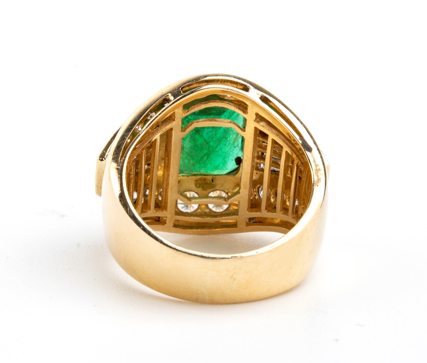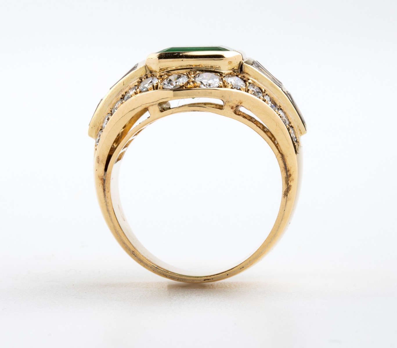 Anello in oro con smeraldo e diamanti modellato come una fascia, incastonato...