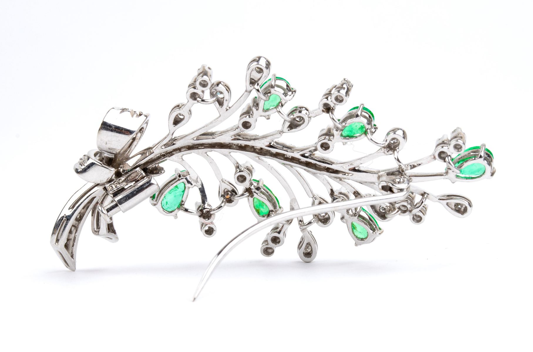 Spilla in oro con diamanti e smeraldi in oro bianco 18k, a motivi di ramo,...