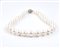 ad un filo di perle coltivate d'acqua salata, fermezza a scomparsa in oro bianco a basso titolo decorata con paste vitree.