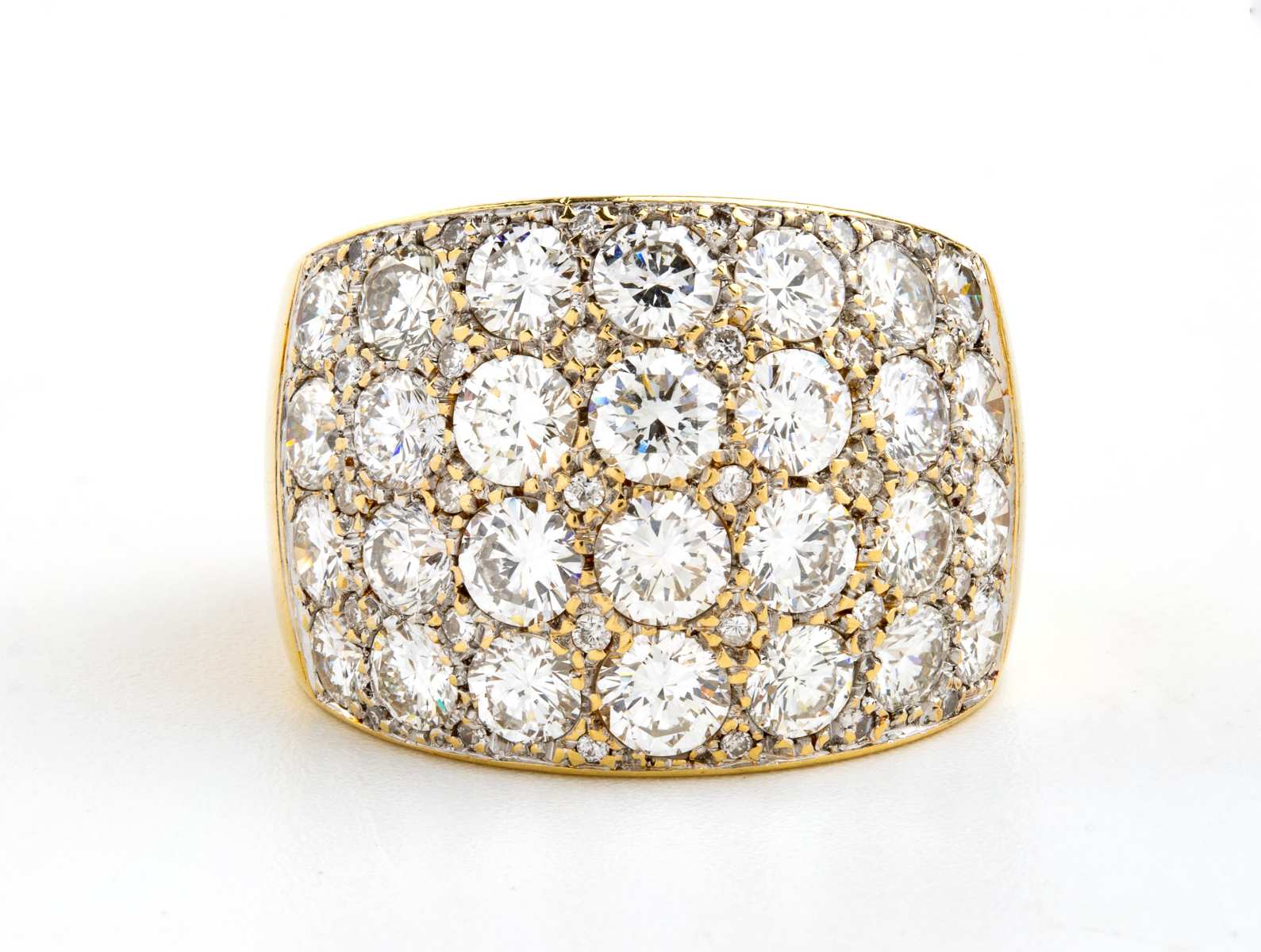 Anello in oro con diamanti modellato come una fascia, incastonato con pave'...